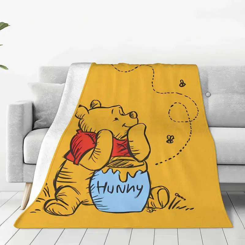 DISNEY CLASSIC Winnie the Pooh Throw Blanket for Adults Flannel Fleece Blanket Soft Warm Blankets for Couch Sofa Bed Camping Travel Movie Theater Suitable for Halloween and Christmas Holiday Decorations