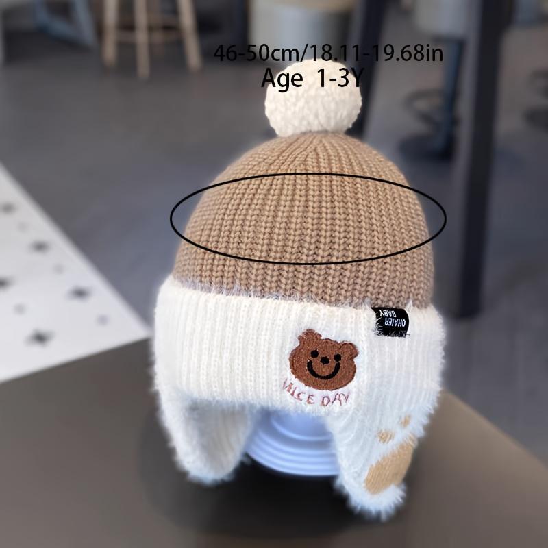 Winter Baby Bean Hat with Bear Ears and Pom-Pom for 1-3 Years Old Kids – Soft Plush Lining, Cute Face Cut, Fluffy Ears, Warm Wool Lining for Neck and Head Protection