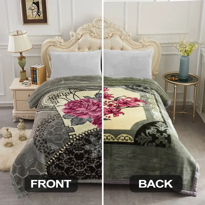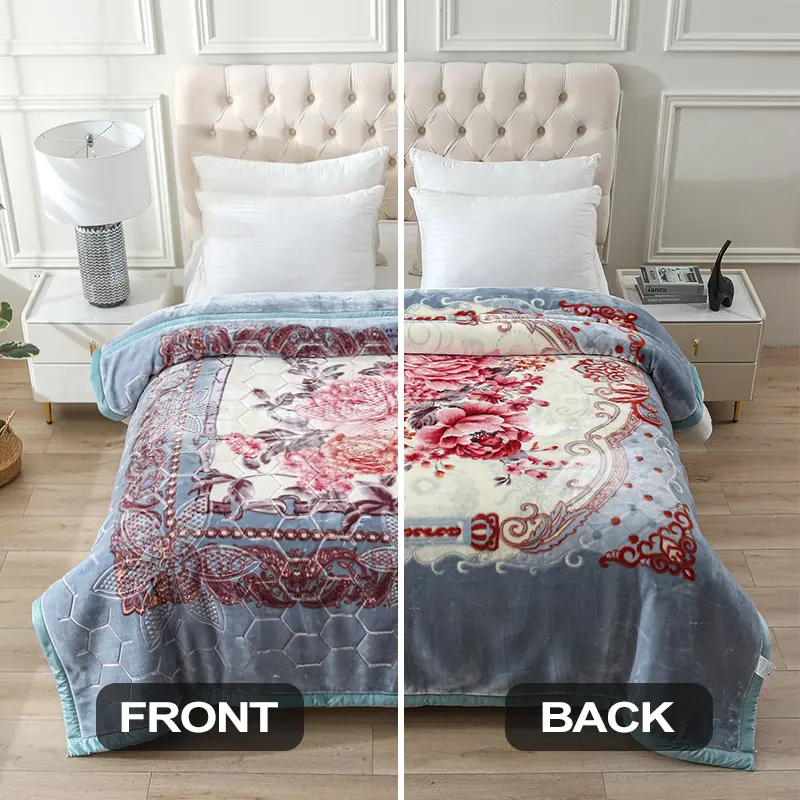 Súper suave. Tamaño King 10 libras reversible me encantó El material es súper de alta calidad
