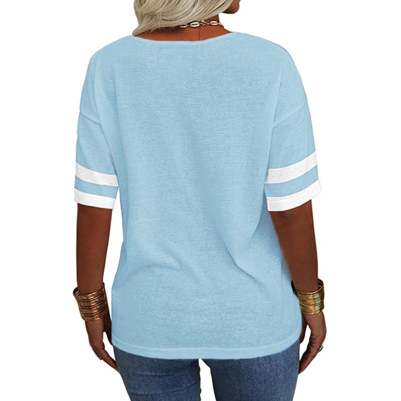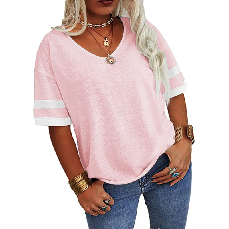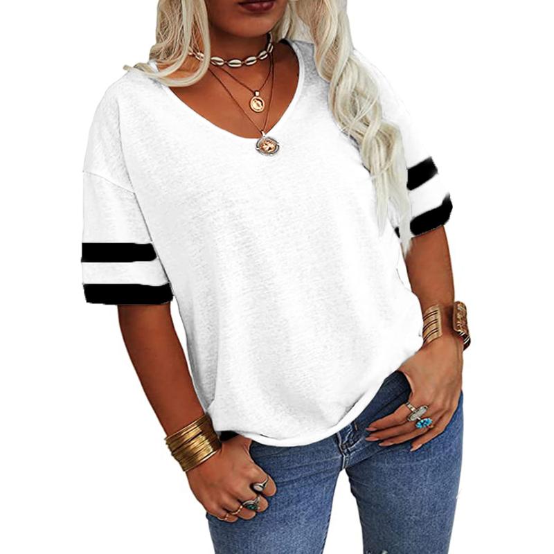 ·【Stylish Design】Plus size summer tops features striped detailing on the sleeves, V neck,bring a casual yet stylish look. It is long enough to cover the hips and hide the tummy well.