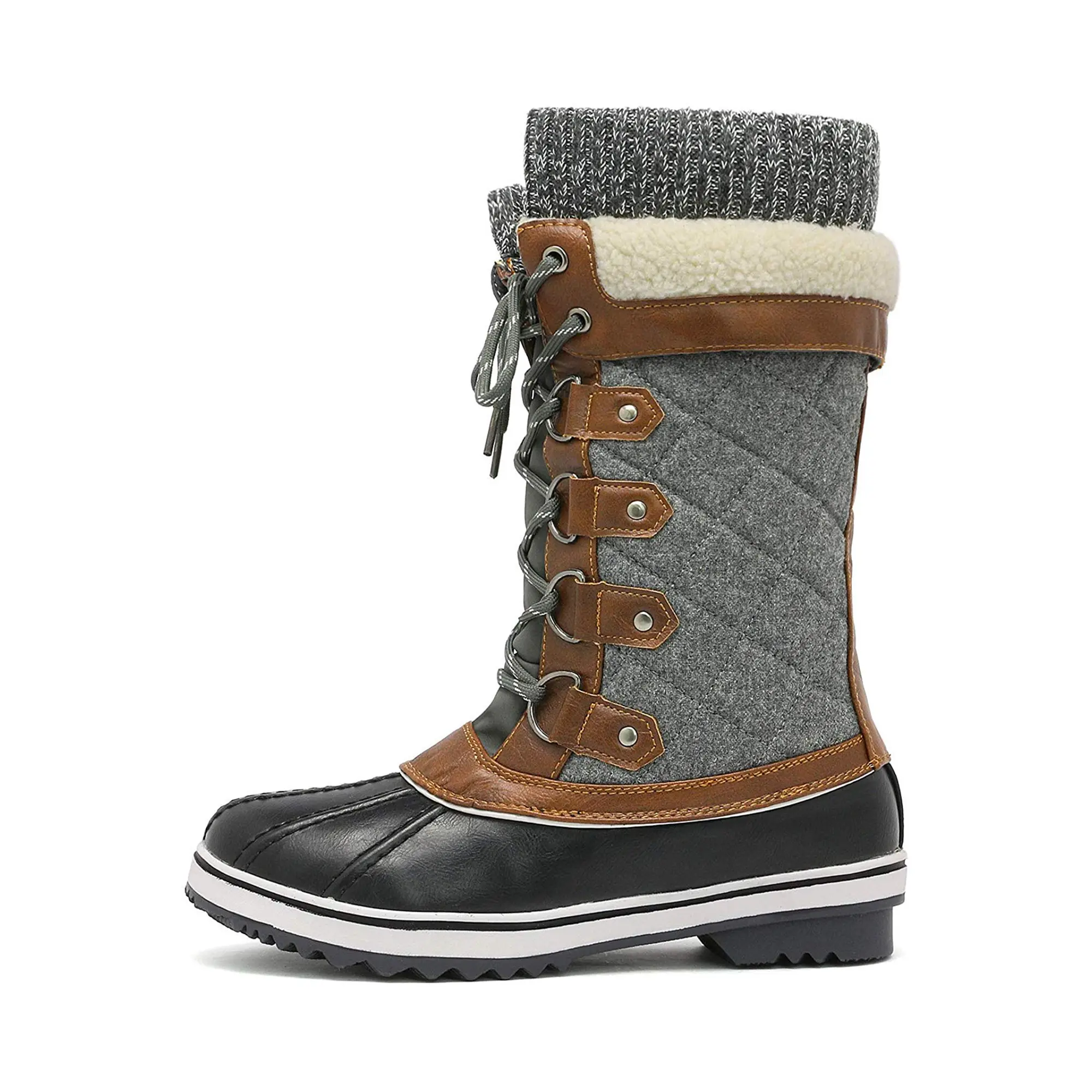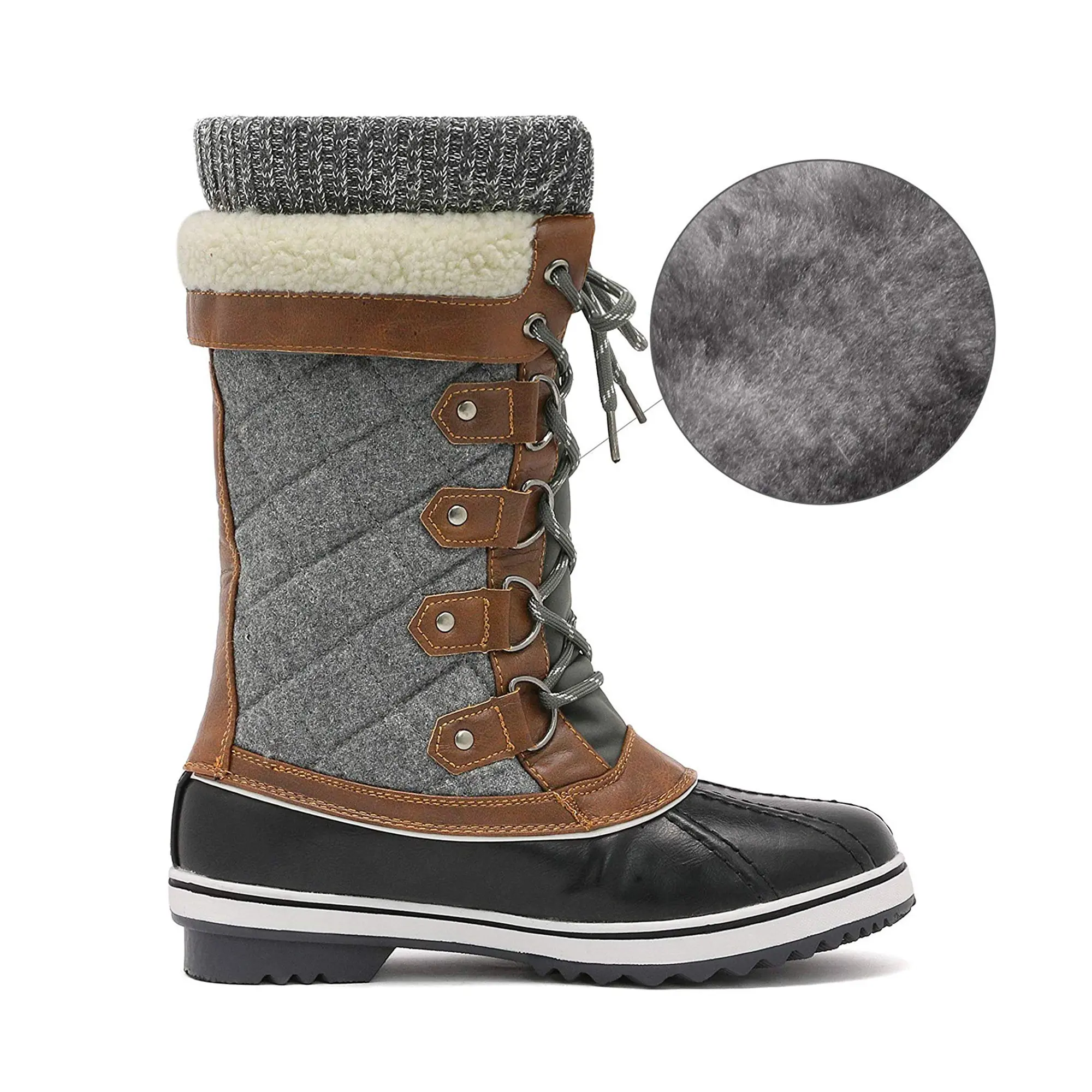 Trendy Design: Designed with a quilted fabric shaft, faux sherpa detail and complemented with a knitted opening these snow boots are a must-have for winter.