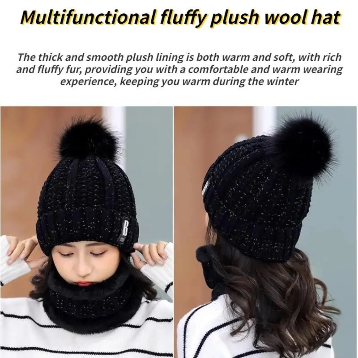 Ultra-soft hat and and neck scarf  warmer set designed to keep you warm. Winter hat and scarf set #winteraccessories #fluffyhead #scarf #tiktokmademebuyit #tiktokshop