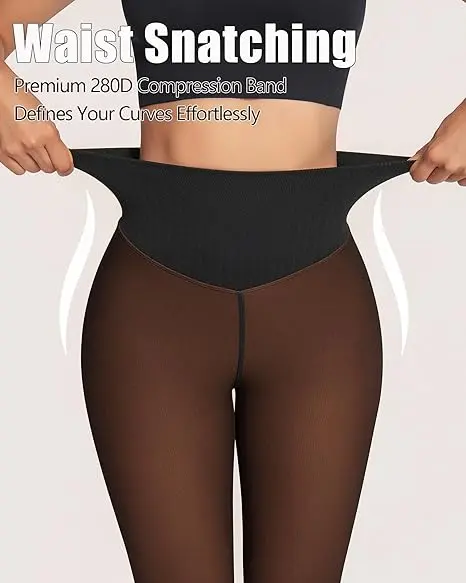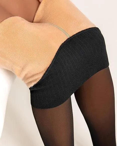 ·Opaque Appearance with Bare-Leg Illusion: Dense knit fabric creates a non-see-through finish that looks like sheer black tights from the outside. Inside, it's lined with nude-toned fleece to match your skin tone and give a natural "bare-leg" effect—stylish and warm.