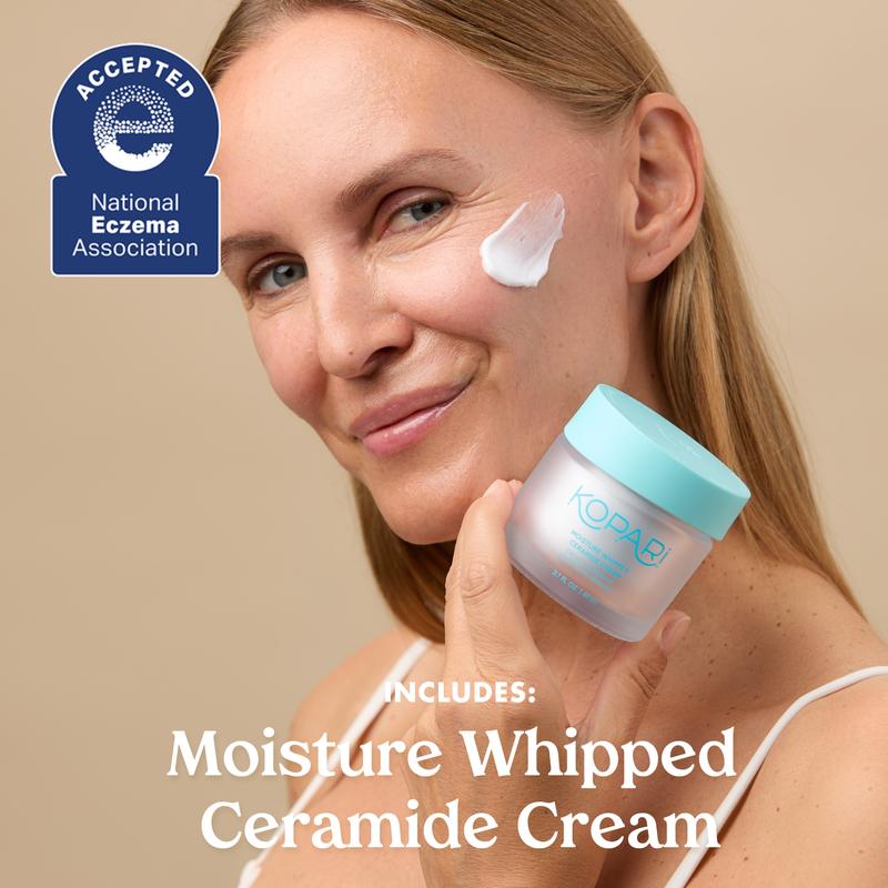 The ultimate skincare routine in one exclusive set. This 5-piece kit includes our Ceramide Grinding Cleansing Balm, Moisture Whipped Ceramide Cream, Soft Vanilla Lip Love, and Marine Clean Purifying Gel Cleanser - all tucked inside a chic baby blue carrying case.