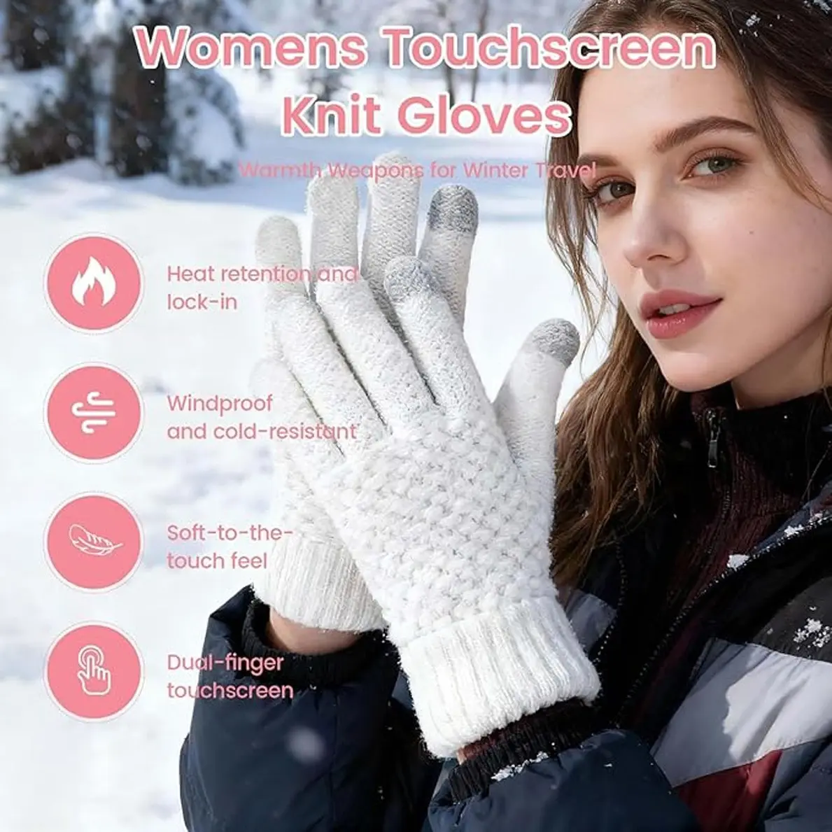 Women's Winter Touch Screen Gloves Warm Fleece Lined Knit Gloves Elastic Cuff Winter Texting Gloves