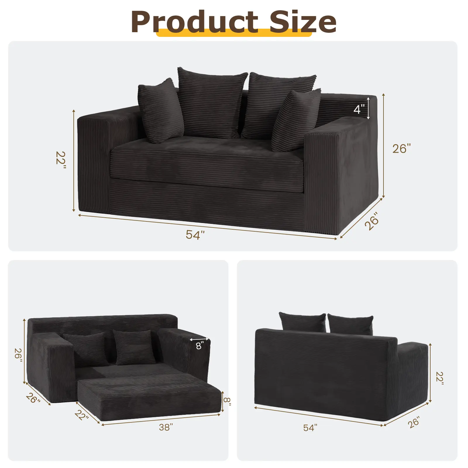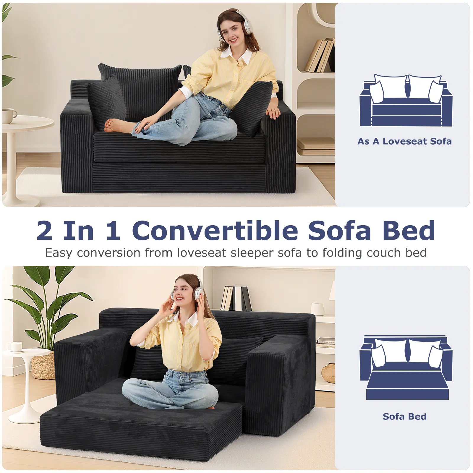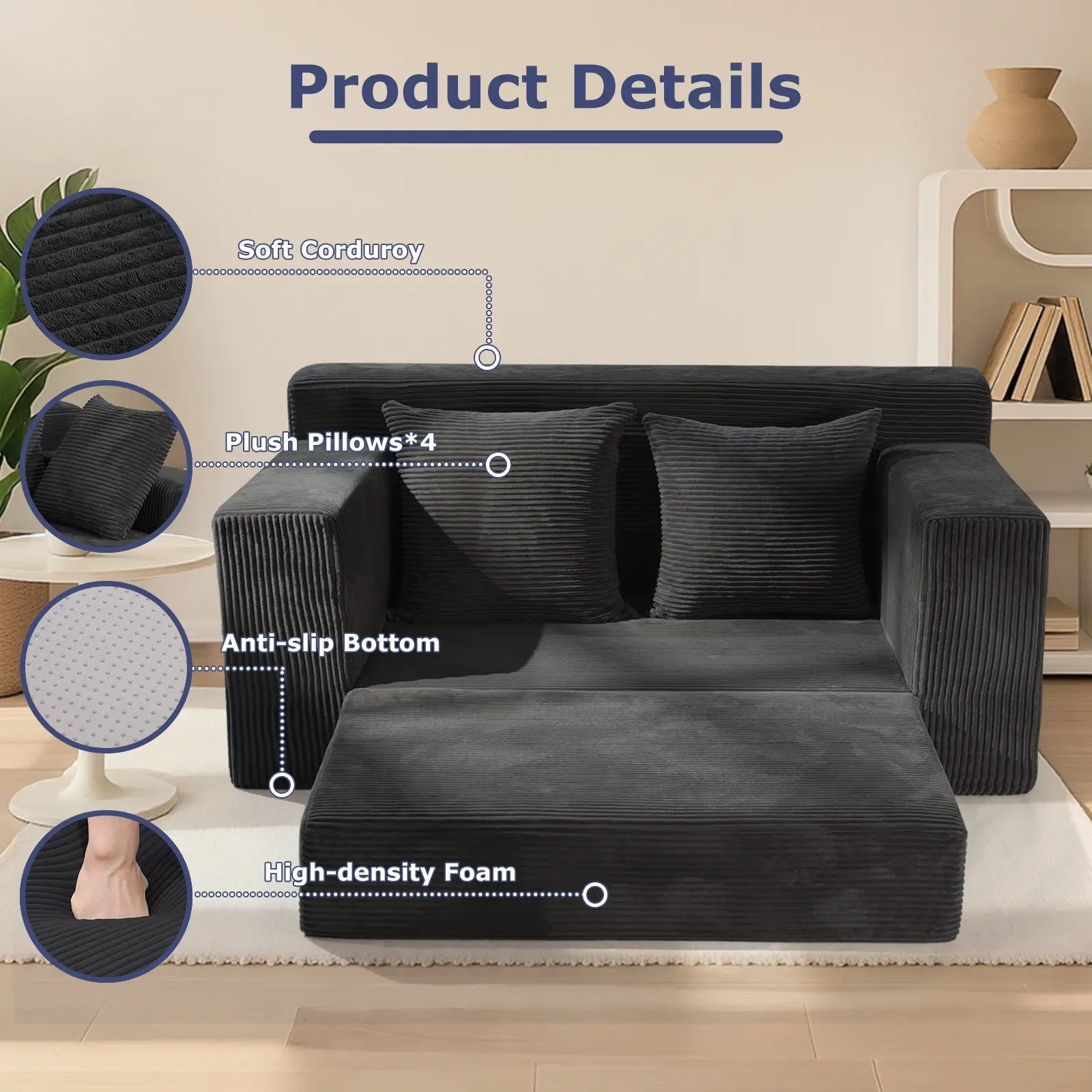 Winzoo Convertible Sofa Bed 3 in 1 Loveseat Folding Couch Bed Foldable Chaise Lounge Chair Floor Futon Sleeper Corduroy with 4 Pillows for Living Room