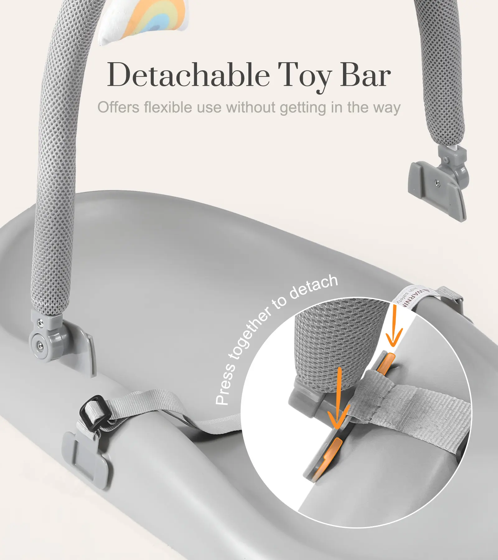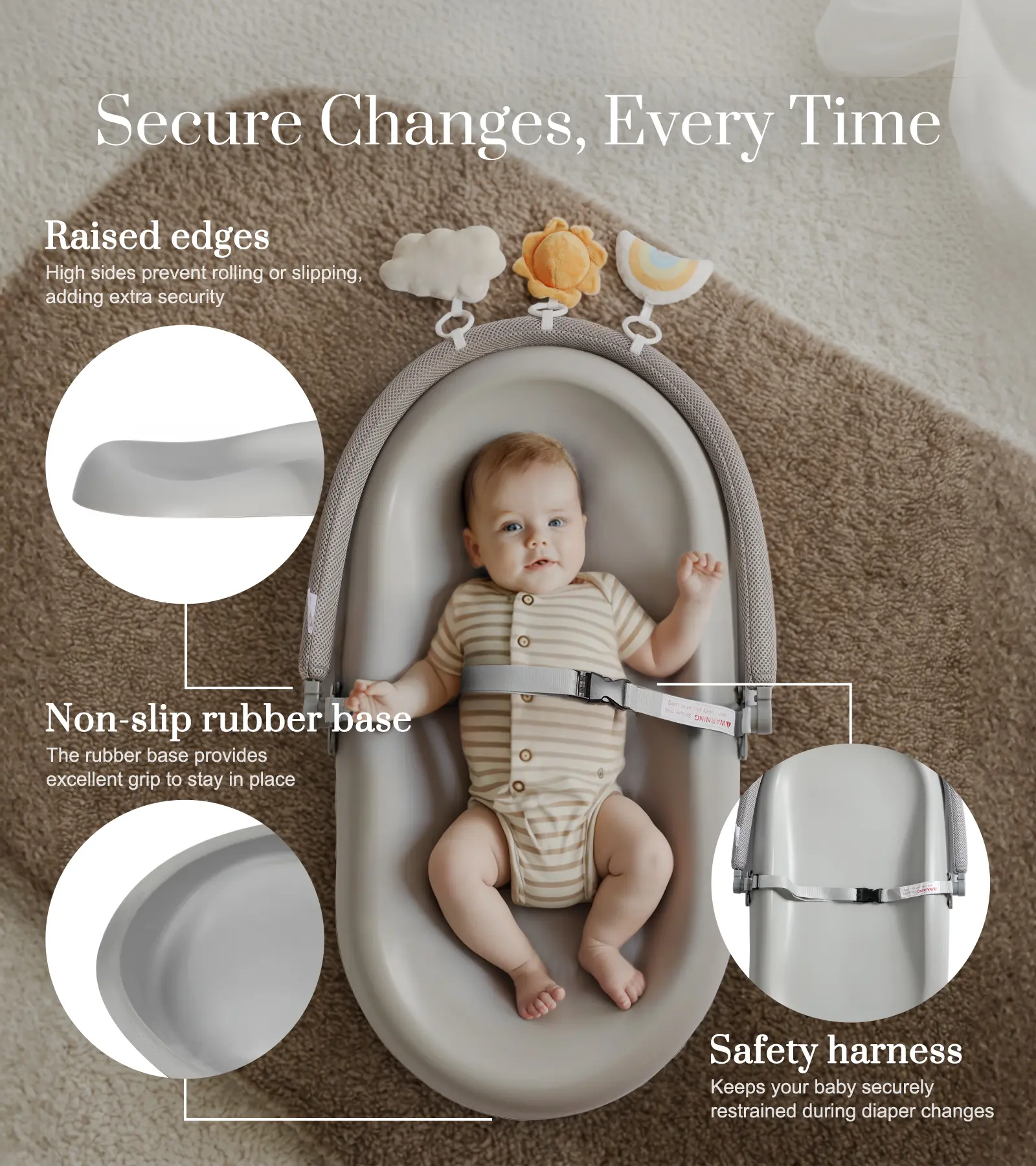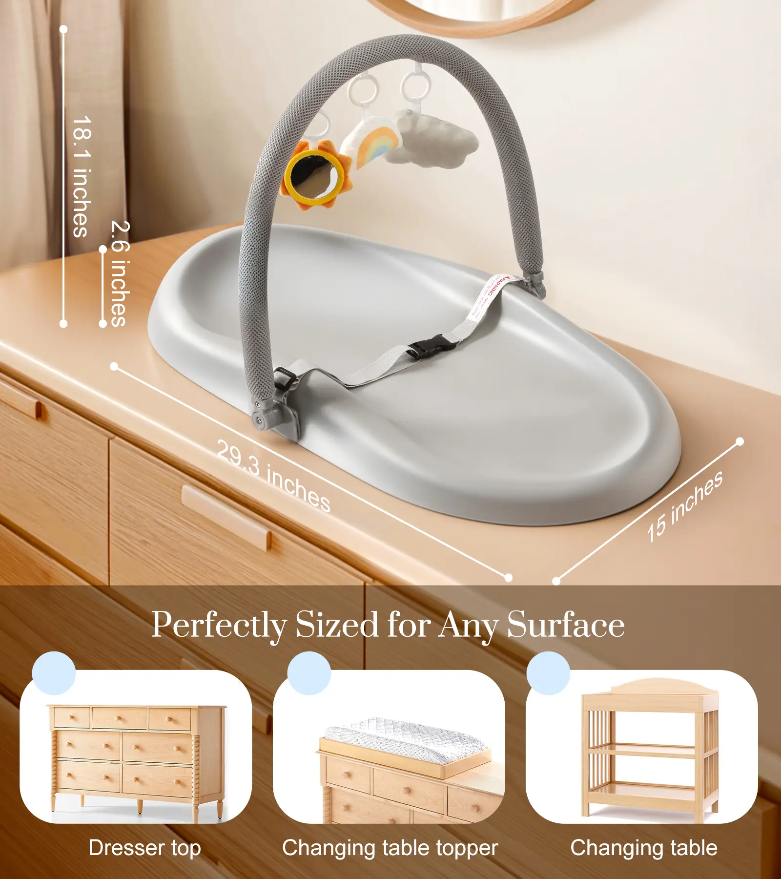 5. Wipe-Clean Baby Changing Pad, Waterproof Durable PU Pad, Soft & Non-Slip Safety Belt & Hanging Toys, Easy to Adjust & Removable Bar, Gray, Supplies Newborn, TikTokShopBlackFriday
