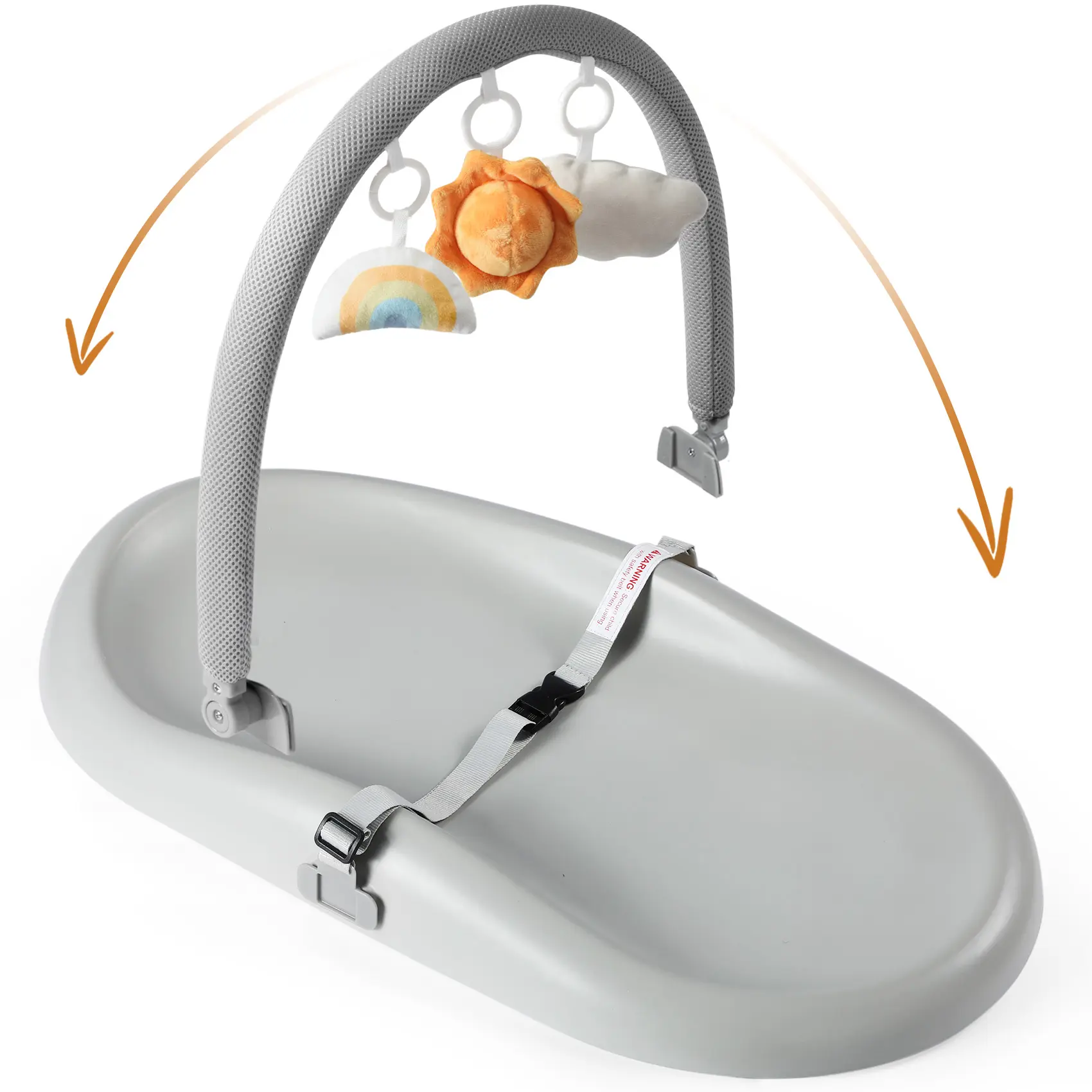 Wipe-Clean Baby Changing Pad, Waterproof Durable PU Pad, Soft & Non-Slip Safety Belt & Hanging Toys, Easy to Adjust & Removable Bar, Gray, Supplies Newborn, TikTokShopBlackFriday