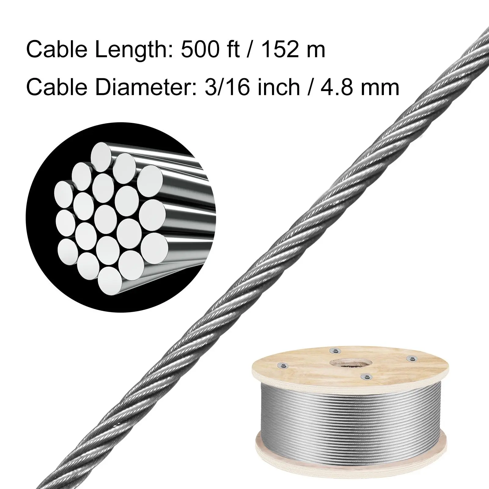 • The Strength You Can Trust: The breaking strength of our wire rope is capable of reaching up to 4,200 lbs thanks to the thickened 3/16'' diameter. It allows for a variety of hanging, strapping, and DIY activities. Take a rest and let the rope take over the heavy work. Get any job completed with peace of mind!