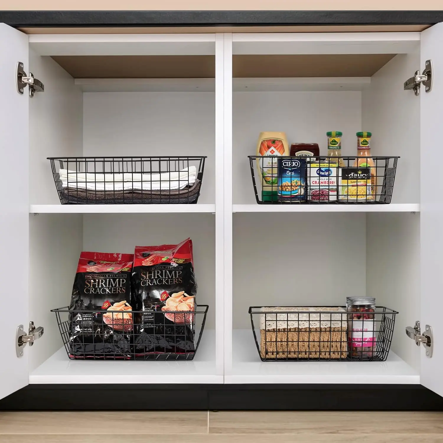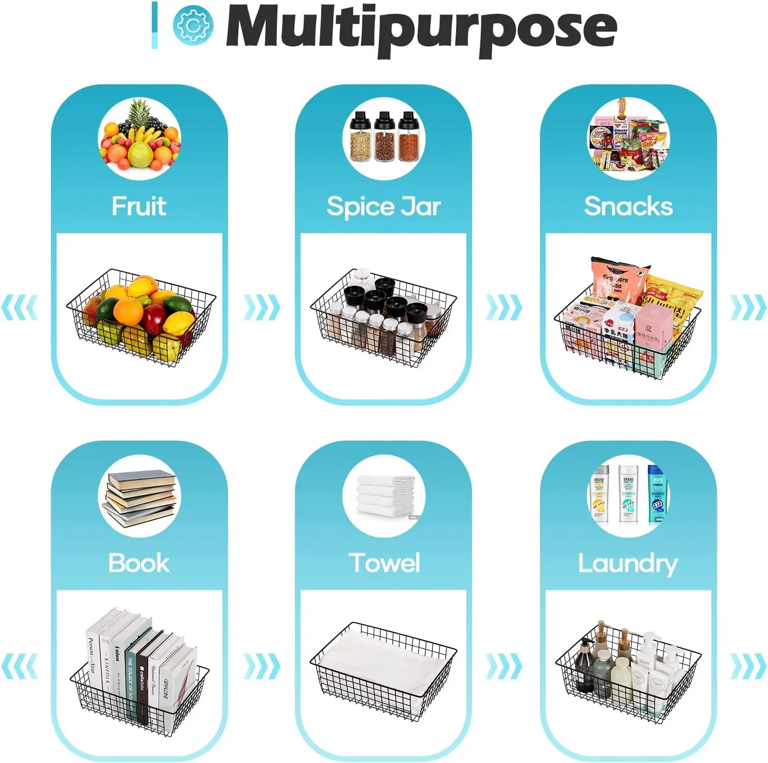 ·【WIDE APPLICATIONS】Taking advantage of wall space, this metal wire basket is perfect for storing such as seasoning jars, fruits, onion, potato, snacks, books, clothing, documents, creating more space for various storage needs.