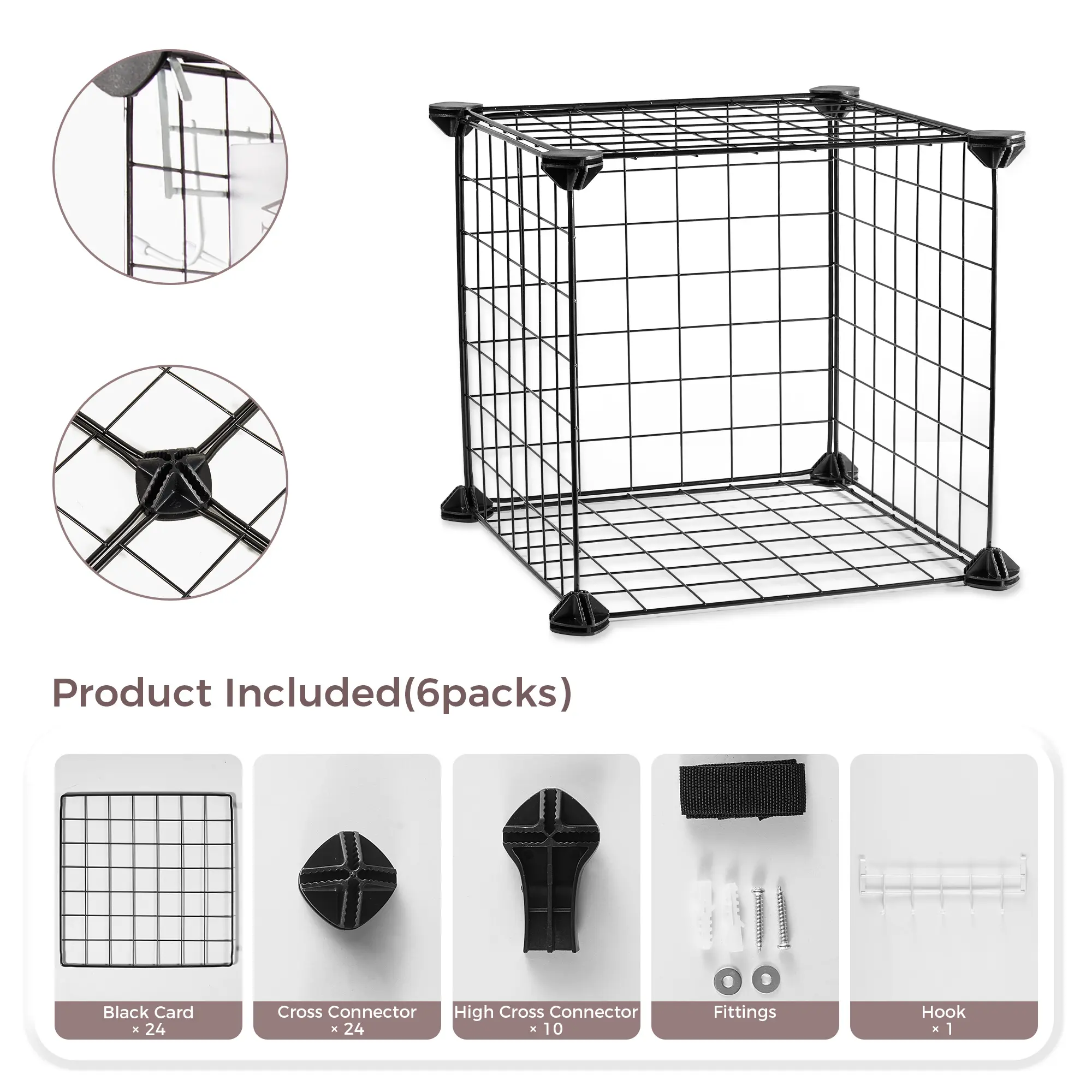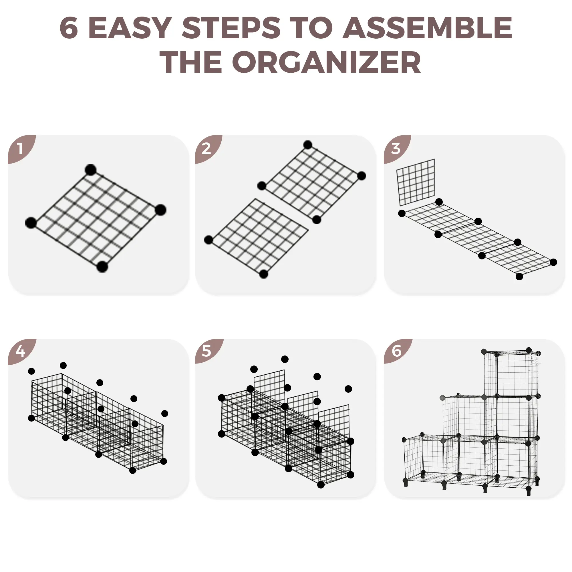 KITEXPERT 6-Cube Wire Storage Organizer,Multi-Use DIY Storage Cube Shelf for Books, Toys, Cat,Rabbit,Dog,Pet Supplies,Gift for Pet,Racks