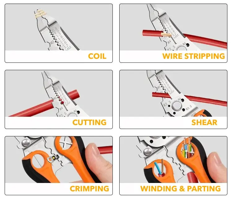 This multi-functional wire stripping tool is designed for engineers, technicians, and serious DIY enthusiasts. Constructed from high-grade stainless steel, it offers exceptional durability and inherent resistance to corrosion. The thoughtfully engineered rubber handle provides a secure, non-slip grip, optimizing user comfort and control for intricate tasks and prolonged use.