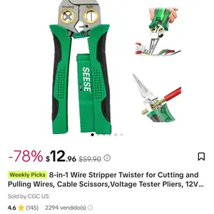 Very disappointed, I ordered the 8 in 1 pliers the one that lights up when current is on and the sent me a piece of trash pliers.
