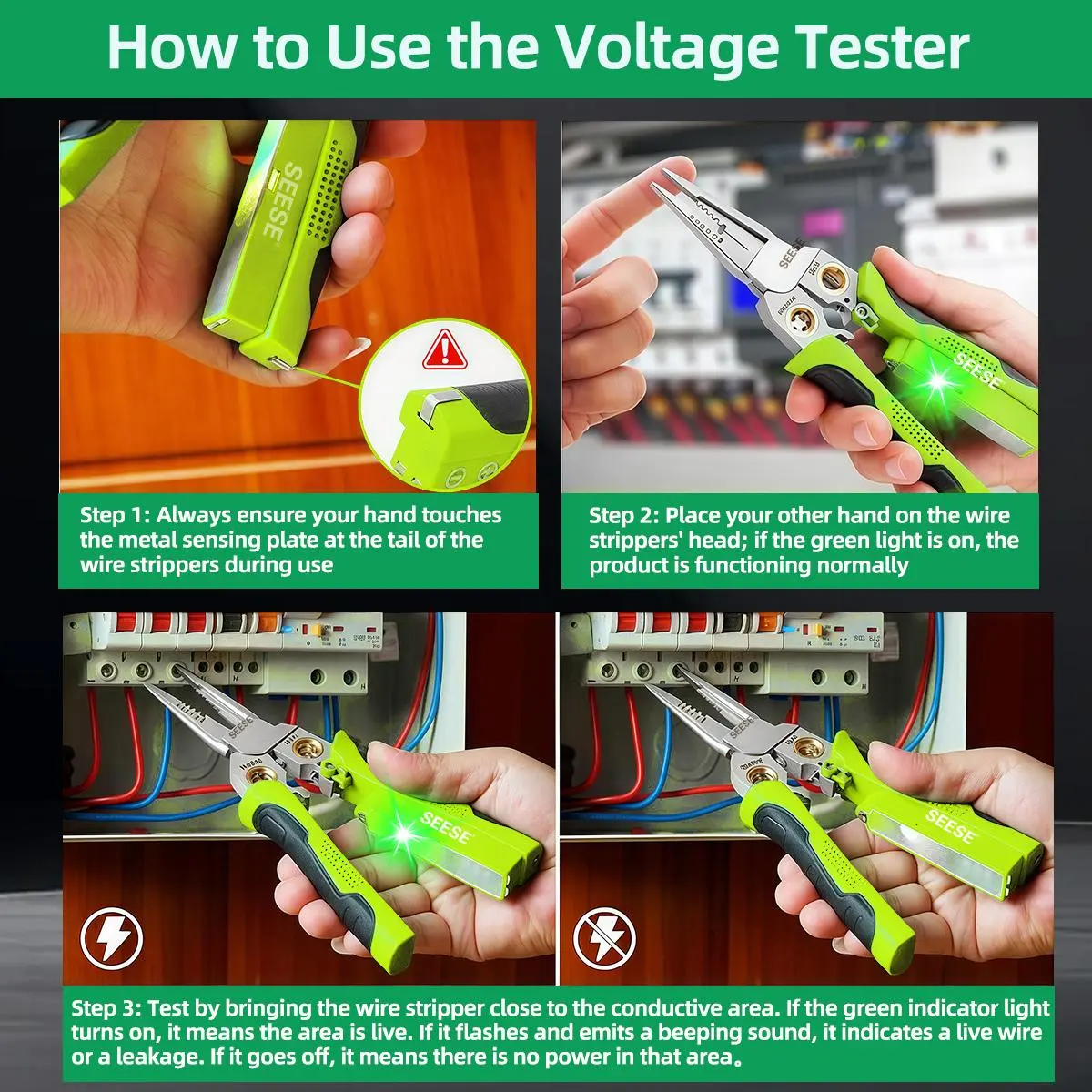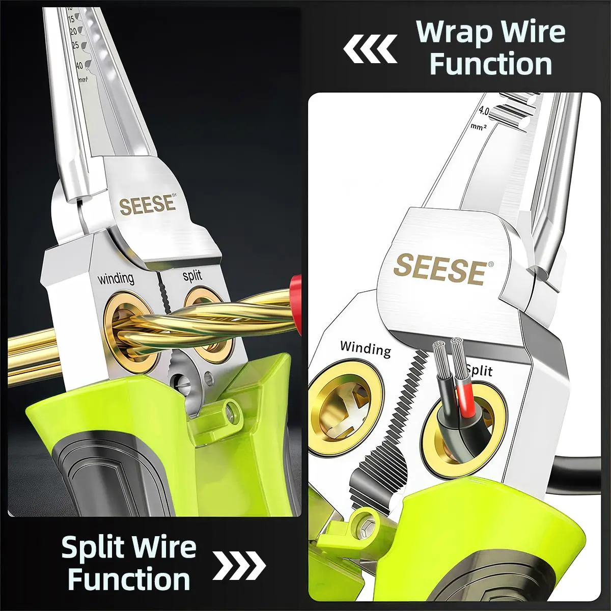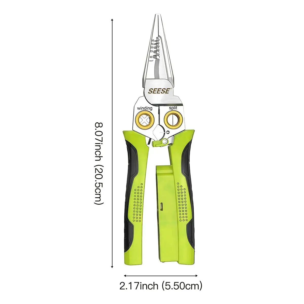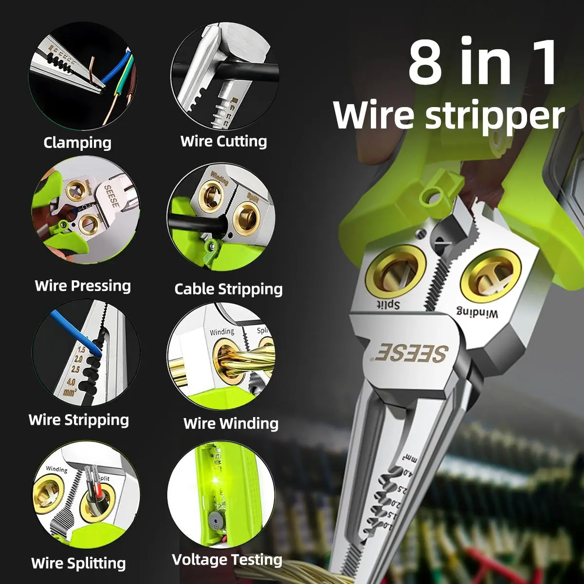 ·8-in-1 Wire Stripping Pliers With Voltage Test Feature, Offering Convenience And Accuracy For Electrical Work. Say Goodbye To Multiple Tools With This All-in-one Solution.suitable For AWG 18,14,12,10,6/1.0,1.5,2.0,2.5,4.0mm²; Cape Cable 25mm² Wire, Open Cable Outer Skin, Divide Wiring 2*1.5mm²