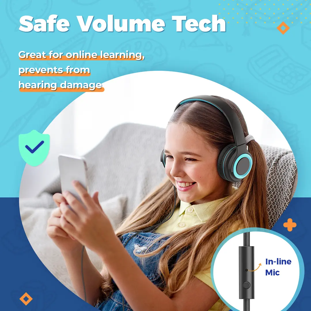 ·【Safe Volume, Clear Sound】: To protect kids vulnerable ears and ensure pleasant listening experience, the 40mm dynamic drivers deliver crystal clear sound streaming for little ears with a protective volume no more than 94dB.