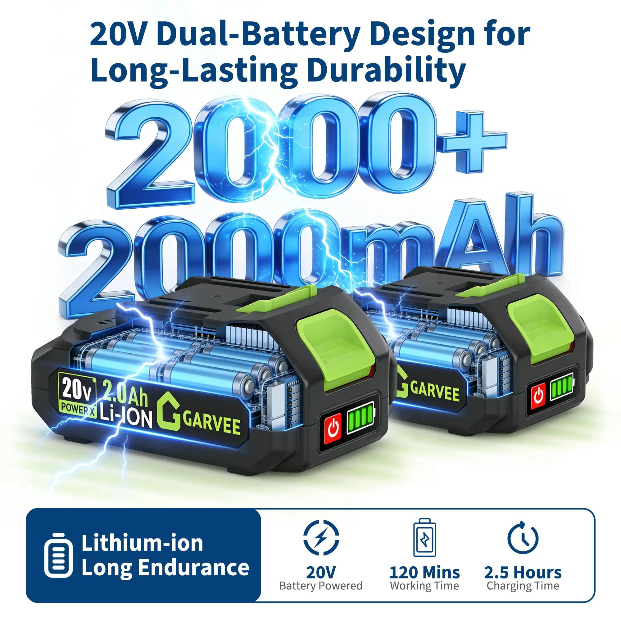 ·Powerful & wireless Convenience: Featuring a robust 20V motor and dual 2.0Ah rechargeable lithium batteries, this electric tool delivers up to 120 minutes of runtime. Enjoy uninterrupted work across gardens, lawns, and yards—no cords to tangle or restrict movement.