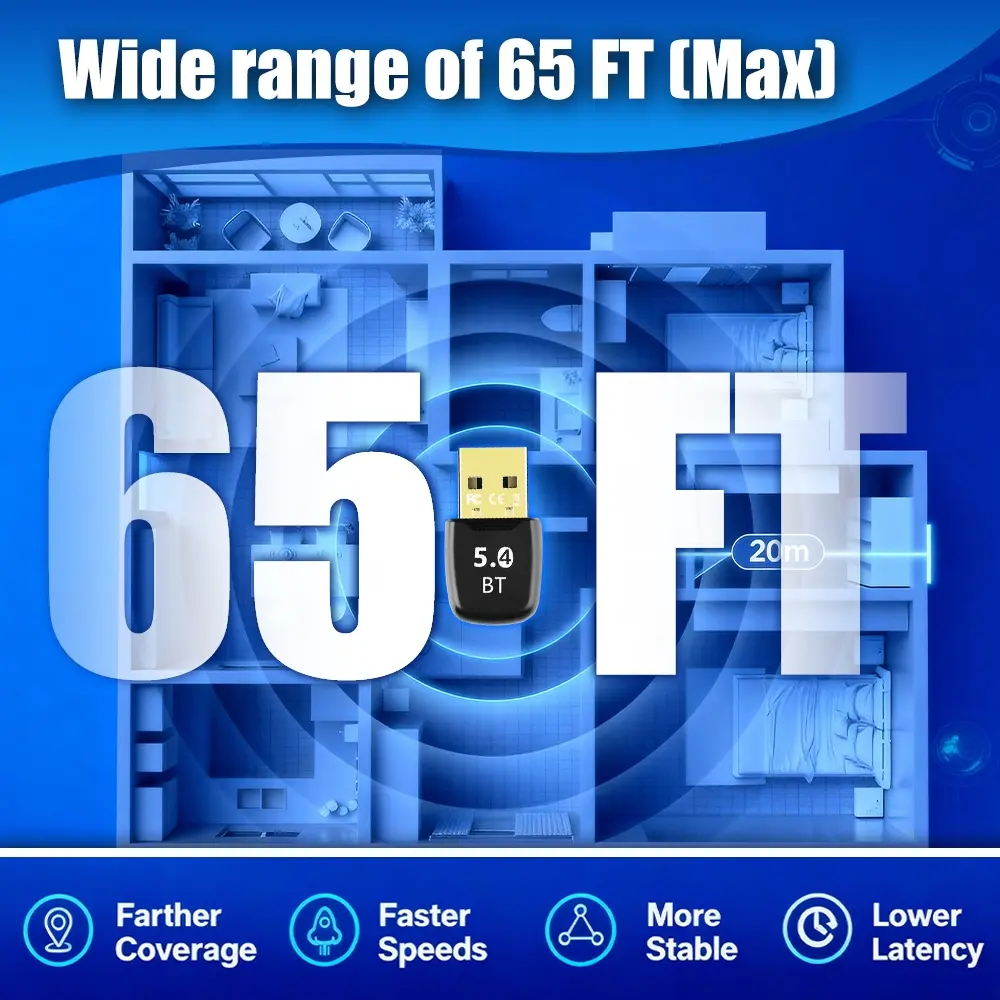Wireless Audio USB Bluetooth Adapter Bluetooth 5.4 Dongle for PC Windows 11/10/8.1 Bluetooth Receiver /Transmitter for Keyboard/Mouse Speak