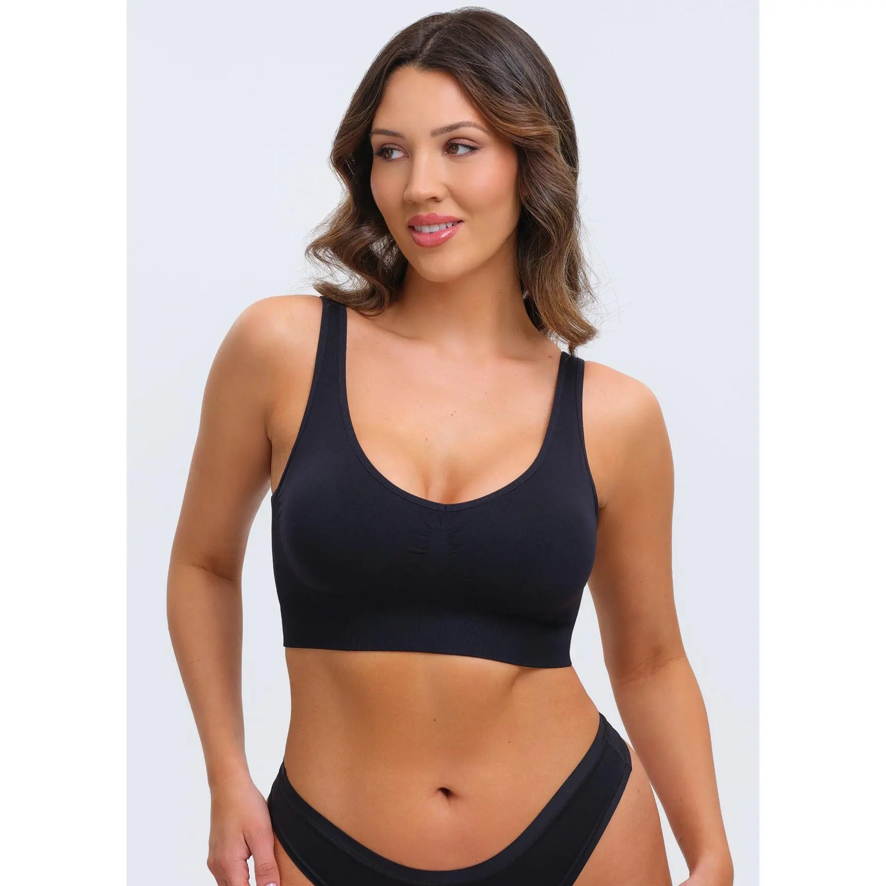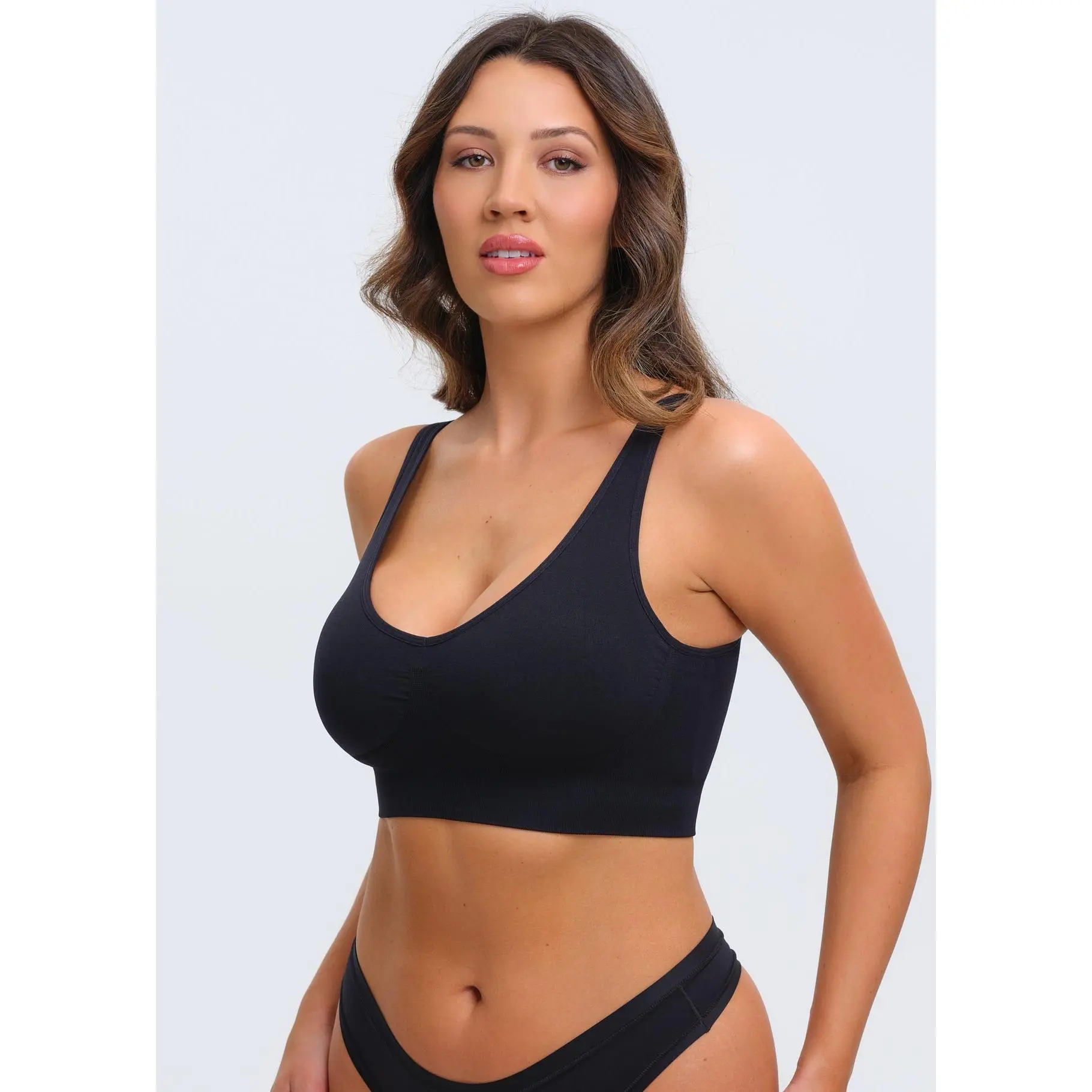 Love this bra very comfortable and soft. I love the design of the bra conceals back fat. Would definitely buy again.