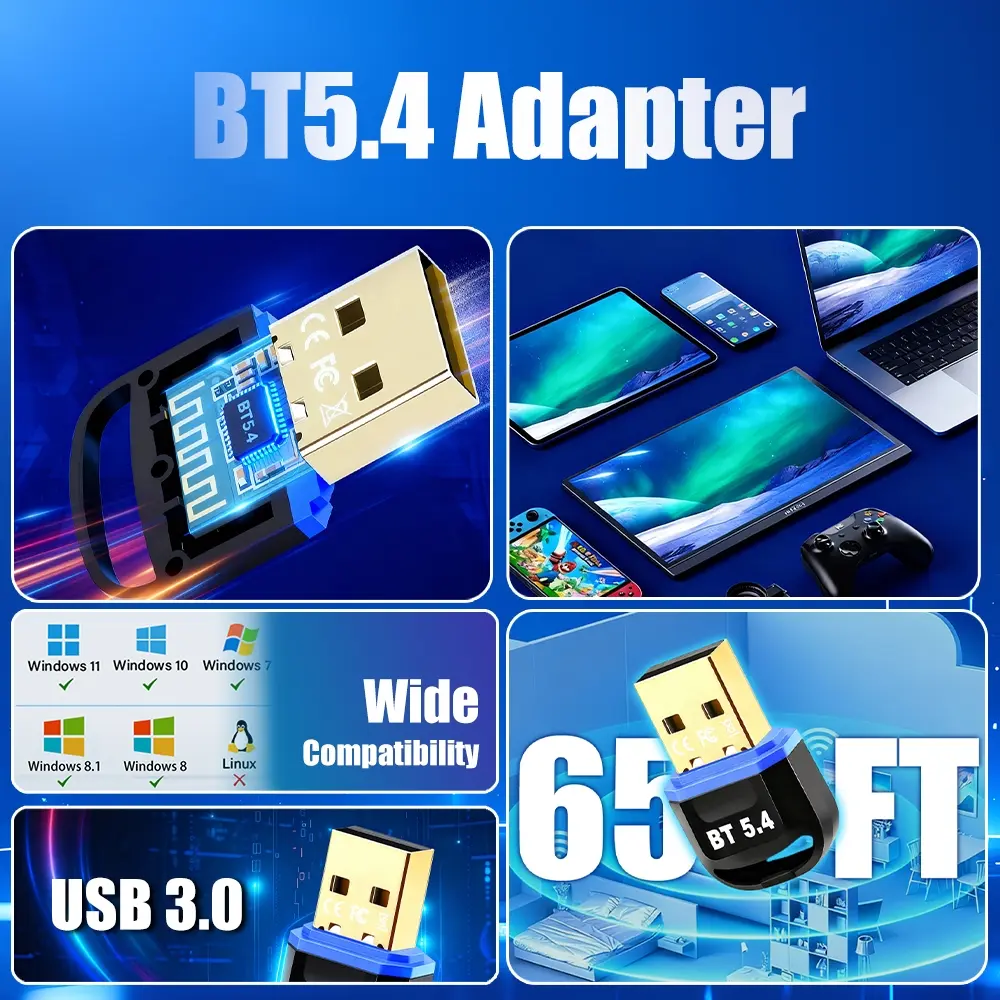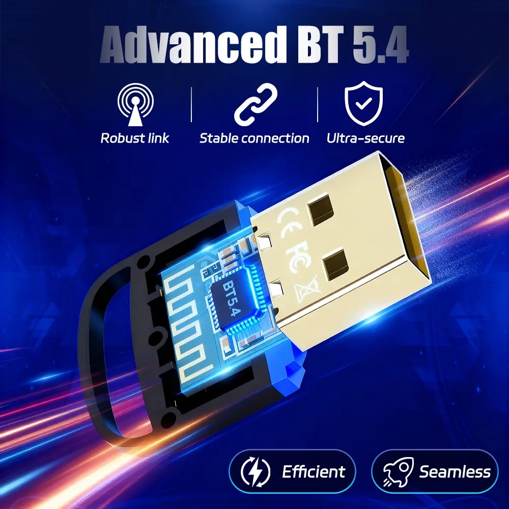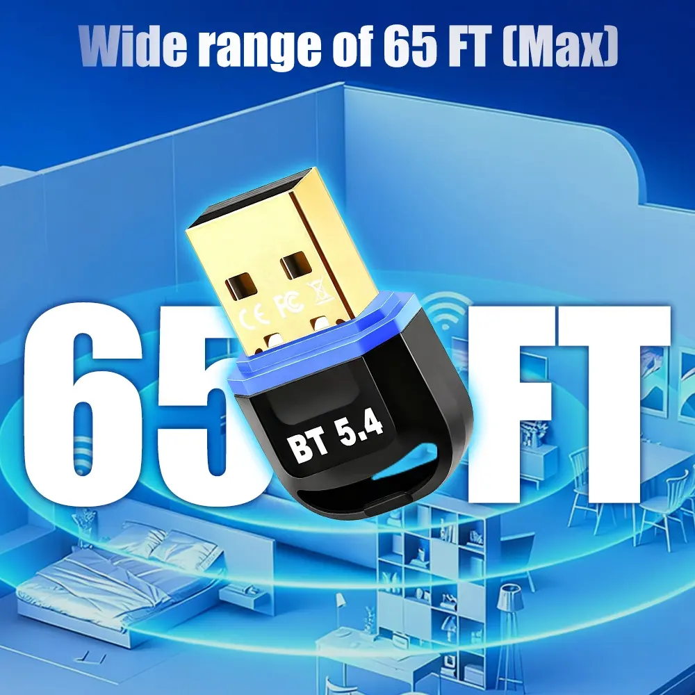 Wireless Bluetooth Adapter for Desktop - 65 Feet Long Range USB Dongle with BT 5.4 Technology, Supports Audio & Data Transfer, Easy Installation for Wireless Speakers, Headsets, Keyboards, Mice for Home and Office Setup
