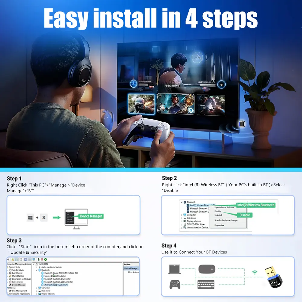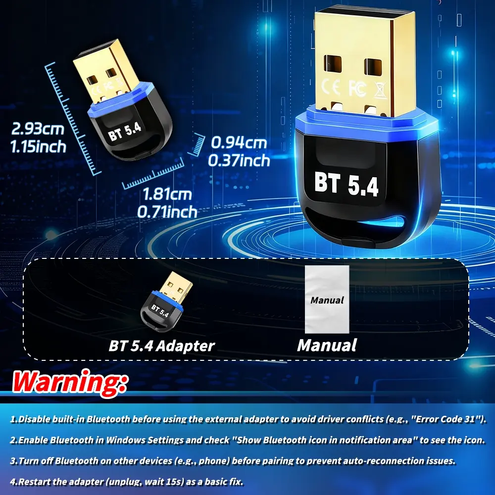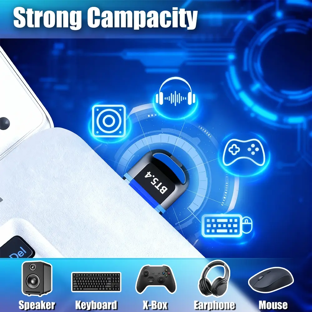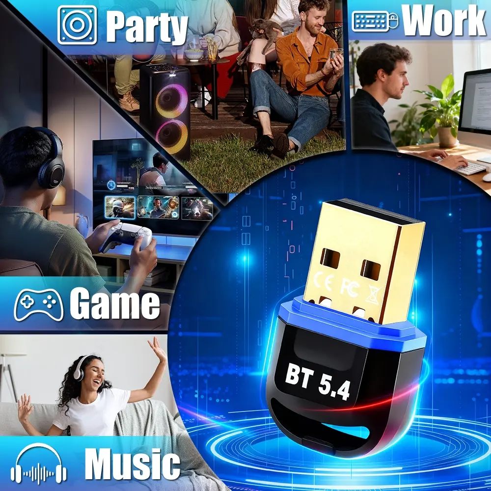 Wireless Bluetooth Adapter for Desktop - 65 Feet Long Range USB Dongle with BT 5.4 Technology, Supports Audio & Data Transfer, Easy Installation for Wireless Speakers, Headsets, Keyboards, Mice for Home and Office Setup