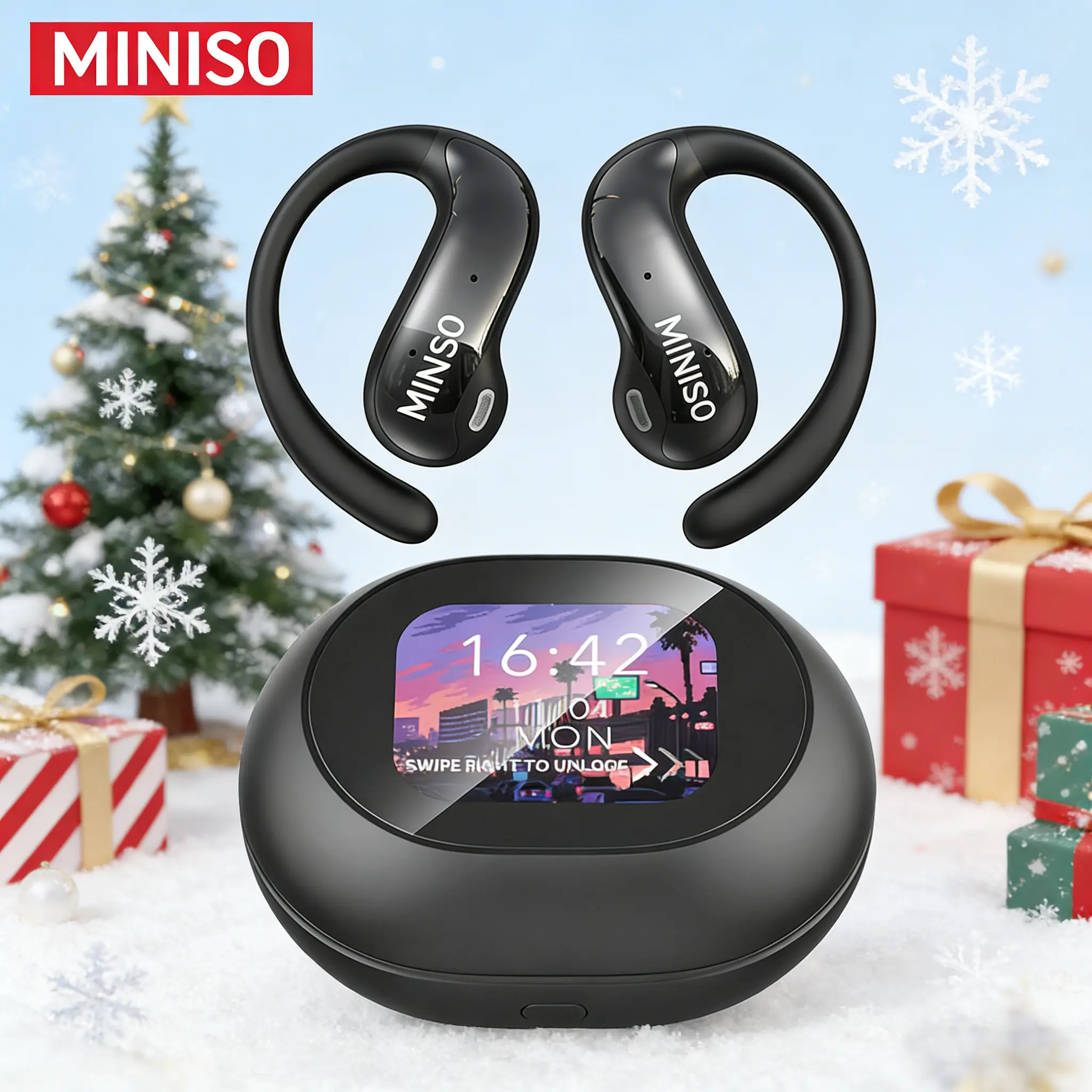Ever wish your earbuds did more than just play music? Meet the MINISO MS188 wireless Bluetooth earbuds, designed to keep up with your busy lifestyle. With an innovative 3D Super Vision full-color display on the charging case, you can easily check battery life, control volume, and access features like an alarm clock and flashlightāall at a glance. These bone conductor earphones deliver 49dB noise reduction and 4K broadband sound, so your music and calls come through crystal clear, even in noisy environments. Plus, the IP55 waterproof and dustproof rating means you can sweat it out or brave the rain without worry. The earbuds offer up to 54 hours of Bluetooth playback on a single charge, recharging quickly in just 1.5-2 hours via Type-C. Comfortable earhooks keep them secure during workouts or daily wear, while intelligent touch controls make volume and call management a breeze. Whether you're gaming with low latency mode, answering calls with HD voice, or just enjoying your favorite tunes, these earbuds combine style, tech, and comfort seamlessly. Included in the box are the earbuds, a full-color display charging case, and charging cable. Ready to upgrade your audio game? Grab the MINISO MS188 and experience sound and convenience like never before!