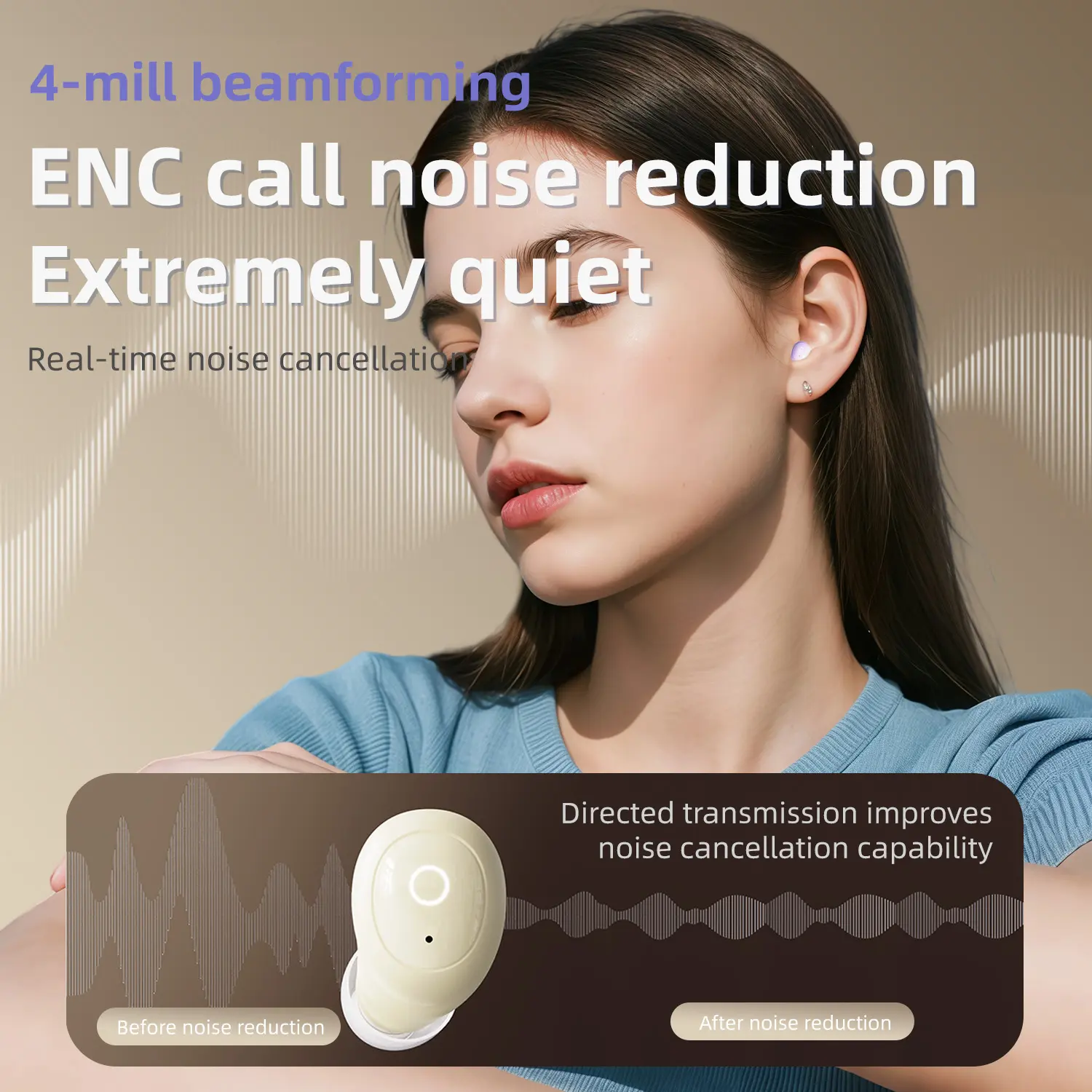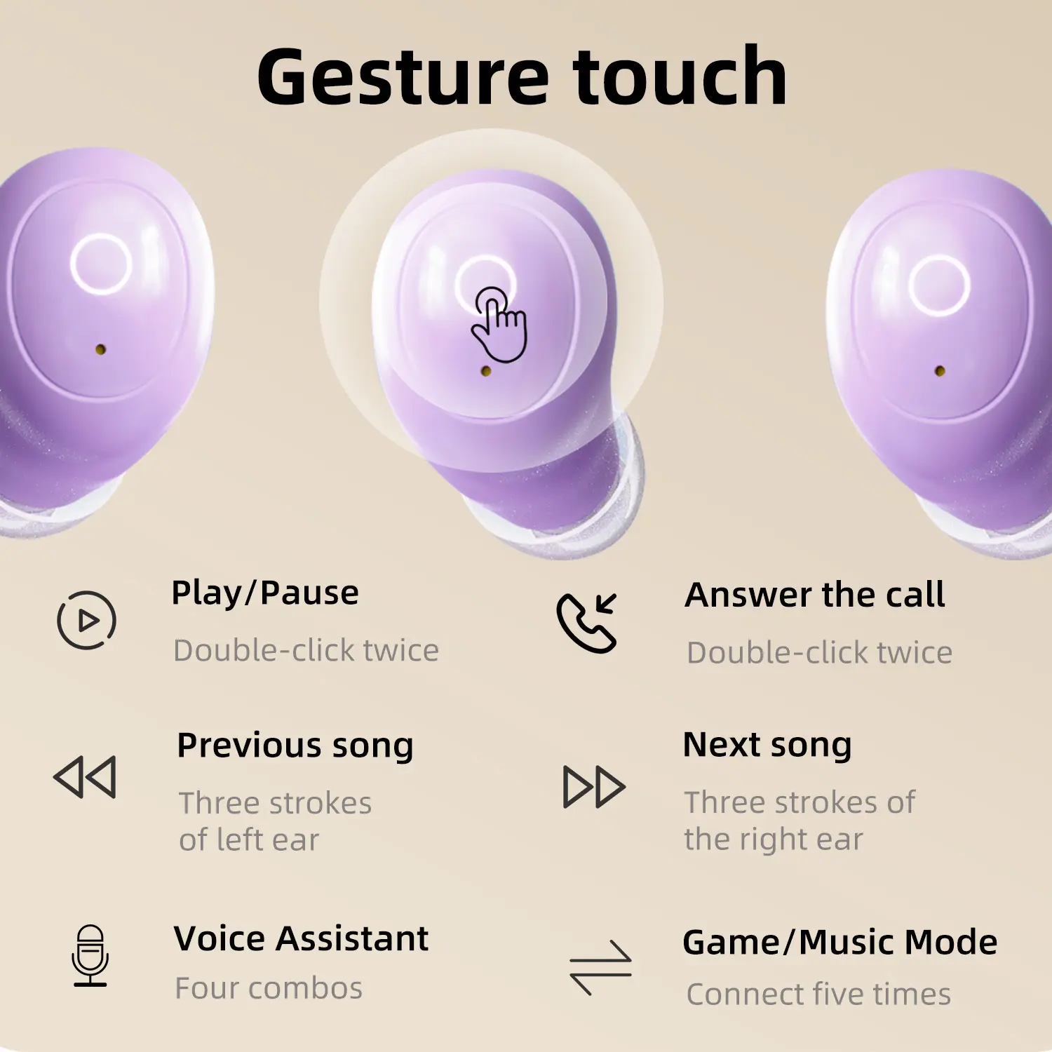 Tired of noisy commutes or restless nights? These wireless Bluetooth 5.0 earbuds are your perfect travel and daily companions. With deep sleep noise reduction, you can finally enjoy peaceful moments anytime, anywhere. The small, bean-style design fits snugly and comfortably, making them ideal for long wear whether you're working out or just relaxing. Experience rich, HIFI high-fidelity audio and immersive surround sound that brings your favorite tunes to life. Stay worry-free with IPX5 waterproof protection against sweat and rain, plus handy gesture touch controls to play, pause, or answer calls without reaching for your device. The long-lasting battery and smart call noise reduction mic ensure you stay connected and entertained all day. Available in vibrant yellow, blue, and purple, these earbuds add a pop of color to your tech gear. In the box, you'll find the earbuds, a Type-C charging cable, and a user manual to get you started. Ready to upgrade your audio experience? Grab a pair and enjoy your music and calls like never before!