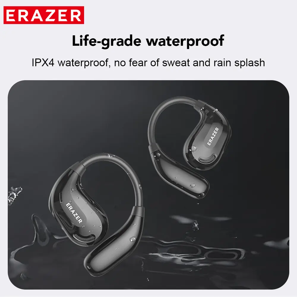 Ever get annoyed by your earphones leaking sound or letting in distracting noise? The ERAZER XT66Pro OWS wireless Bluetooth earphones solve that with directional sound transmission that cuts 93% of sound leakage, keeping your music private. Equipped with a 14.2mm dynamic coil and pro audio tuning, these headphones deliver rich HiFi sound that makes every note pop. Whether gaming or chatting, the ultra-low 6ms latency and advanced ENC noise reduction keep your experience smooth and voices crystal clear. Plus, with an IPX4 rating, they're sweat and splash resistant—perfect for workouts or rainy days. The comfy over-ear design stays put no matter how intense your session gets. You can jam for up to 13 hours per earbud and a whopping 90 hours total with the charging case, which recharges quickly in just 1.5 hours via USB-C. The LED display shows battery status at a glance, so you’re never caught off guard. Compatible with phones, laptops, and even cameras, these wireless earphones blend style, comfort, and stellar sound quality effortlessly. Ready to upgrade your audio game? Grab the ERAZER XT66Pro and enjoy music your way!