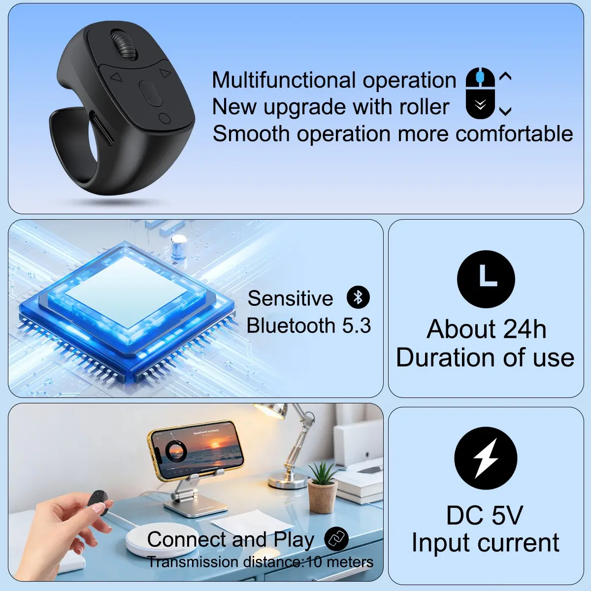 ·【Ergonomic Ring-Style Design】 Compact, lightweight, and designed to fit comfortably on your finger without slipping. The ergonomic ring design ensures a secure fit and fatigue-free use for long periods