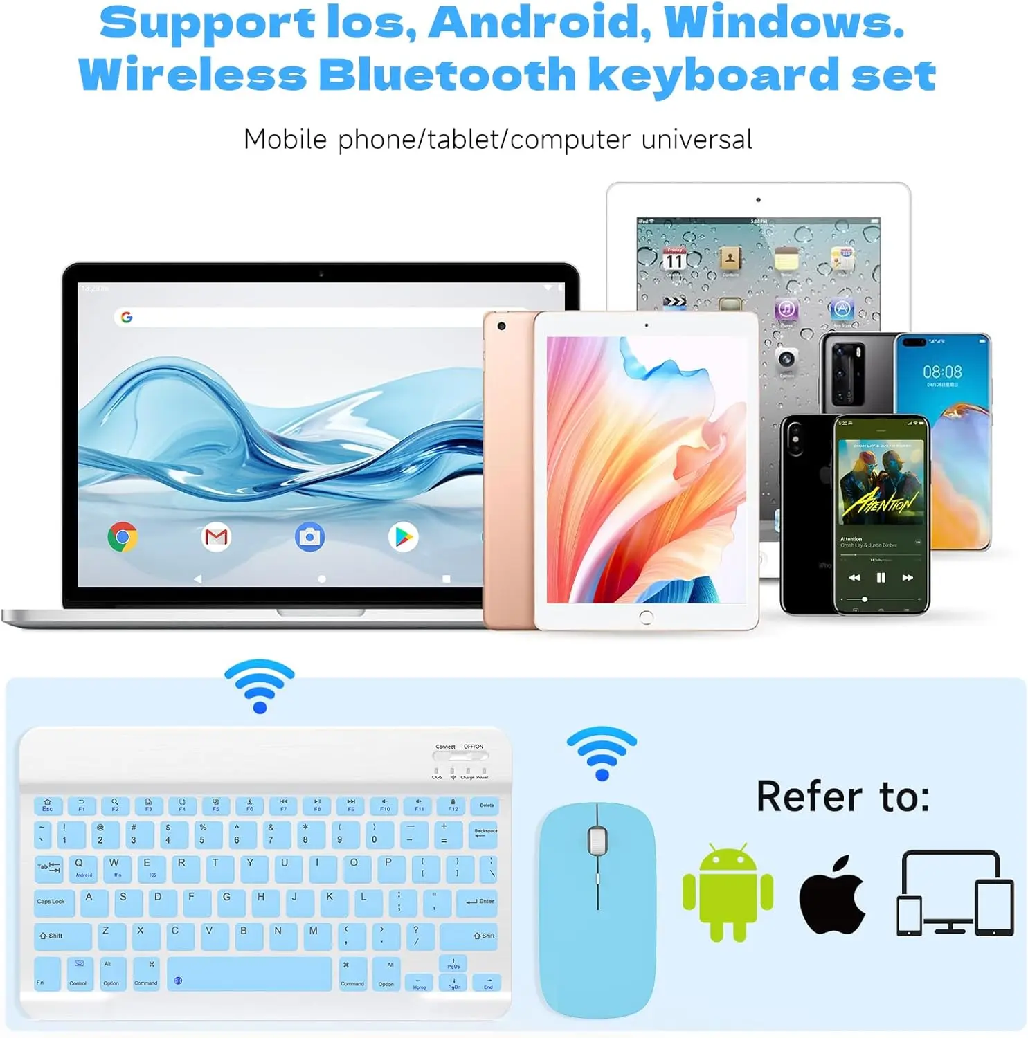 Upgrade your workspace with this Wireless Bluetooth Keyboard & Mouse Combo in a stylish light blue finish — designed for smooth performance, portability, and modern convenience.