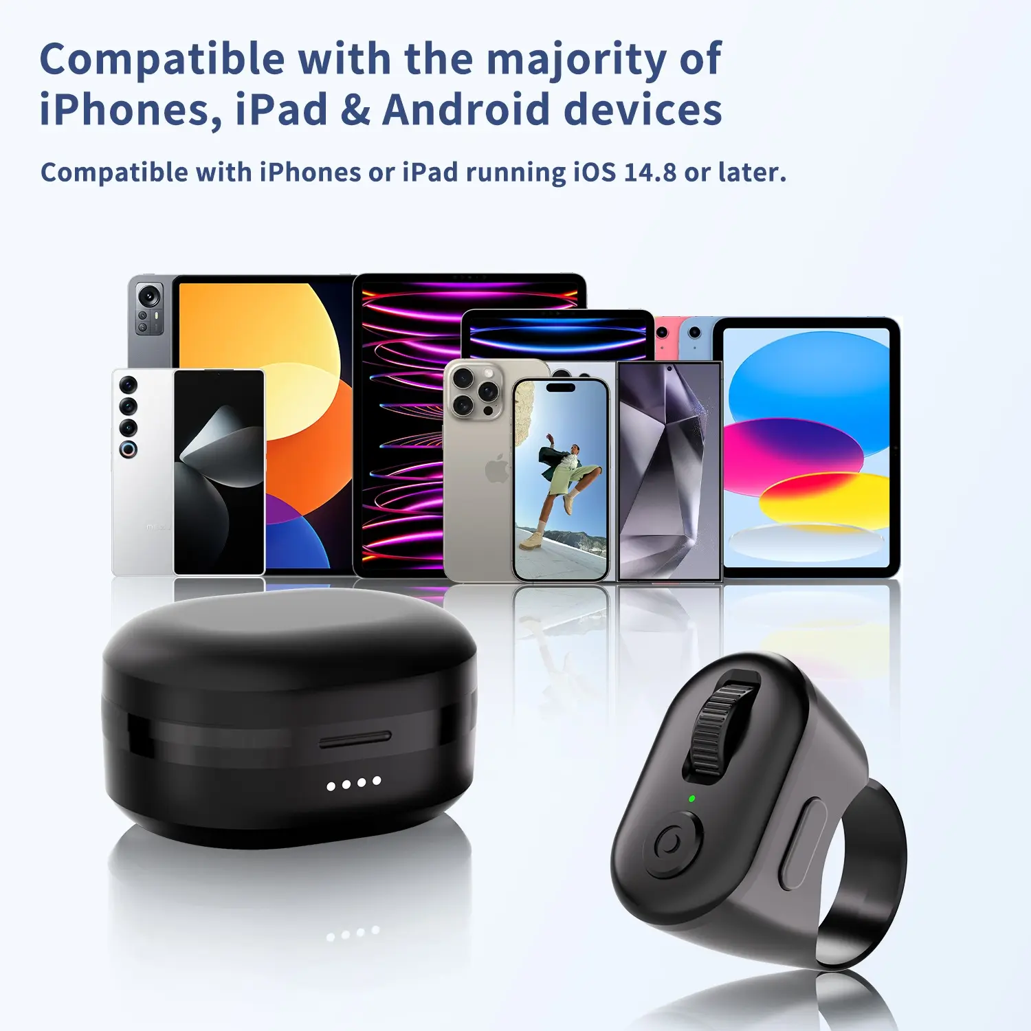 Compatible with iOS (above 14.8 version) and Android devices. For Tik Tok, Kindle App and Spotify etc. Advanced Bluetooth 5.0 chip create a quick, unbreakable connection and you can remotely control the paired devices within 33 feet. It will turn off automatedly if without any operation for 30 minutes.