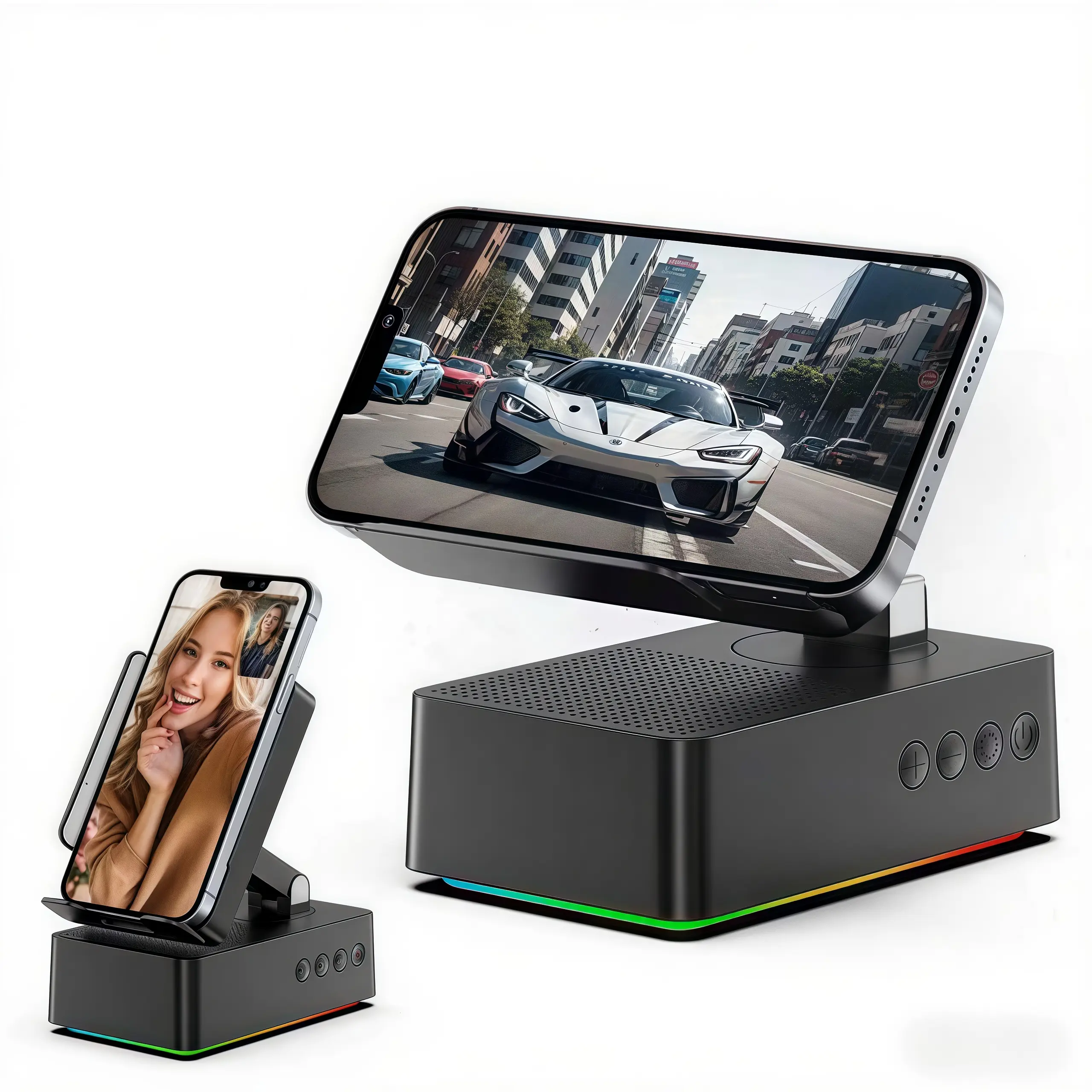 Experience the AKLLCCR Gen 2 speaker, perfect for any room. It features a phone stand and RGB magic color music rhythm lights. The 5.4 HD surround subwoofer sound delivers an immersive audio experience. Ideal for friends and family, it's a thoughtful gift.