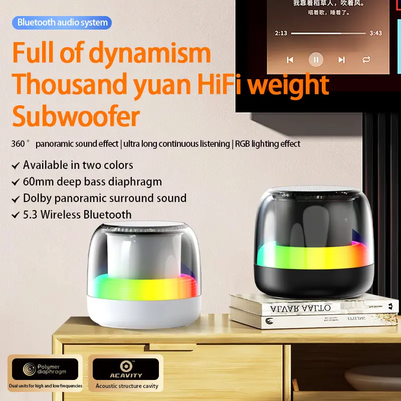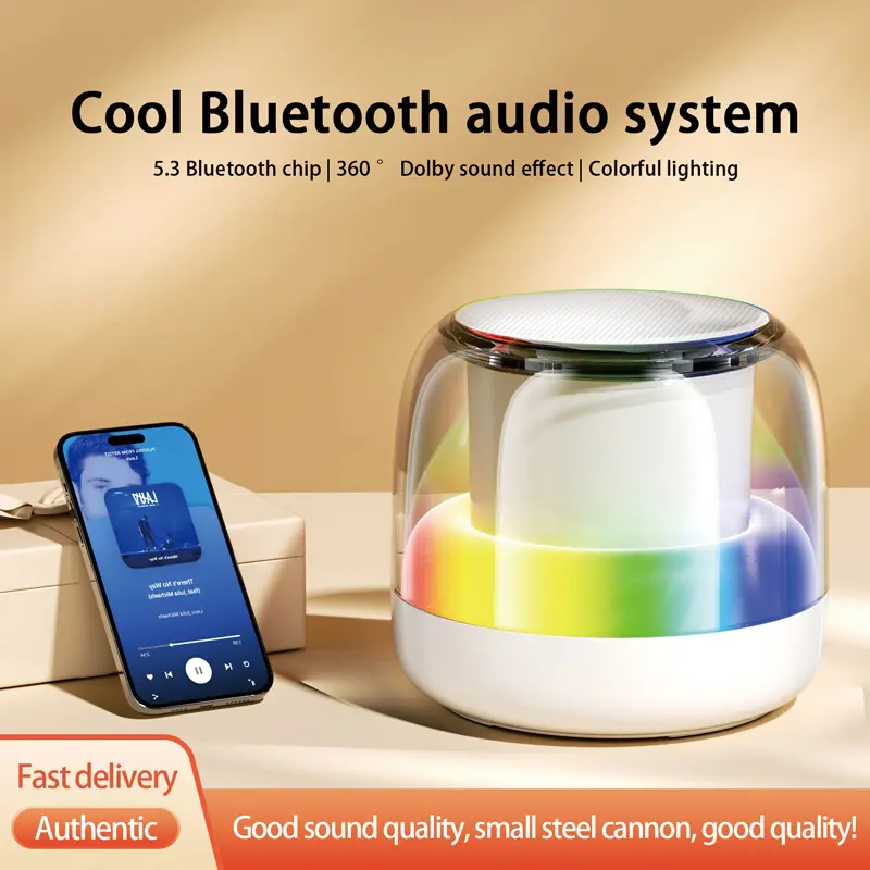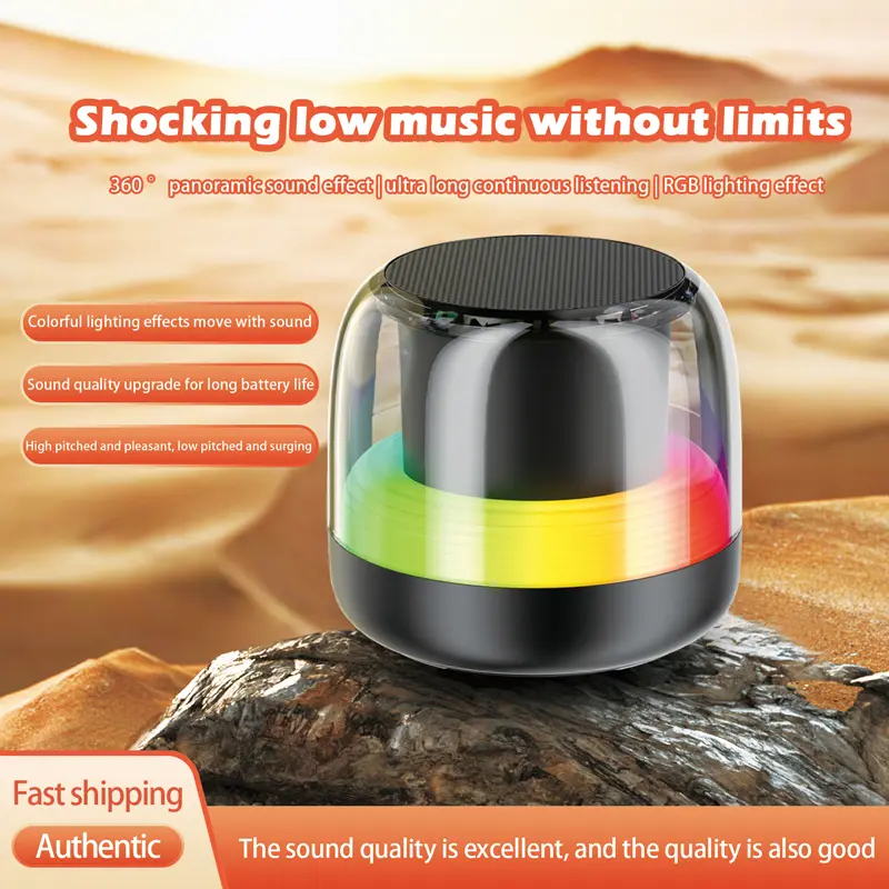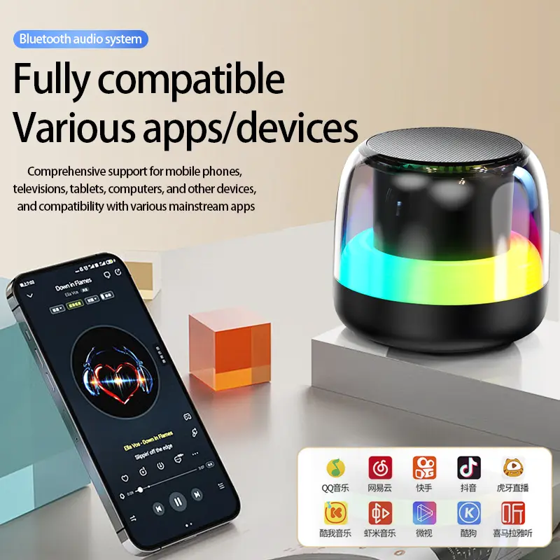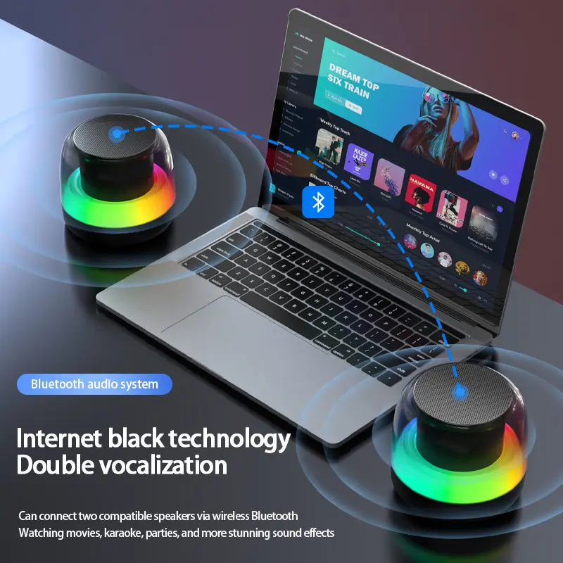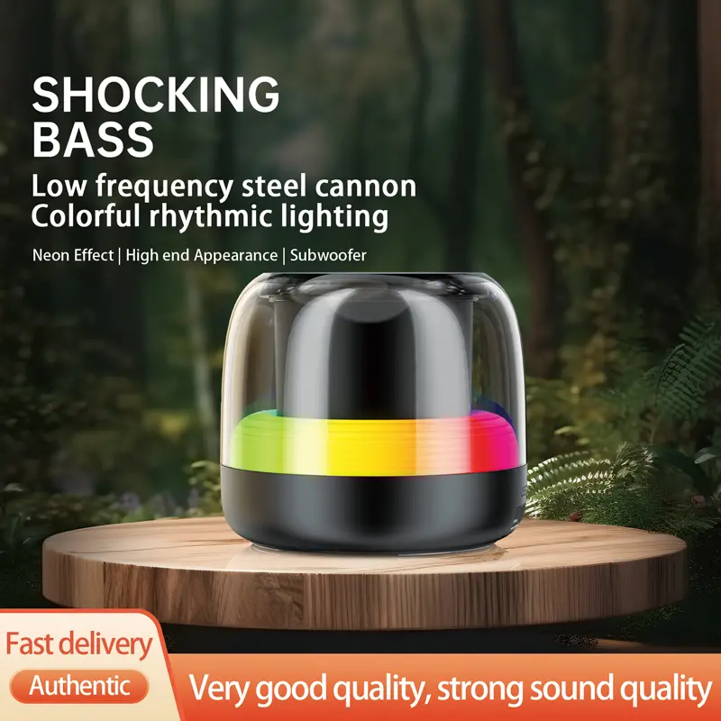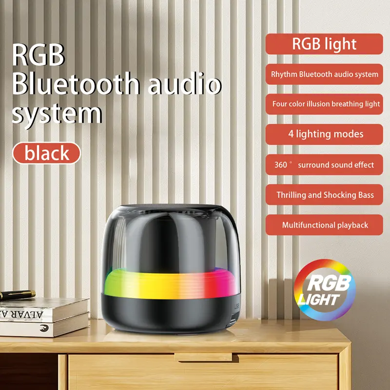 Wireless Bluetooth Speakers with TWS Pairing, Support Bluetooth USB TF AUX Playback, BT5.0, Portable Bluetooth Speaker for Home/Party/Outdoor/Beach, With 7-Color LED Light Audio Cable Charging Rechargeable Smartphone Black