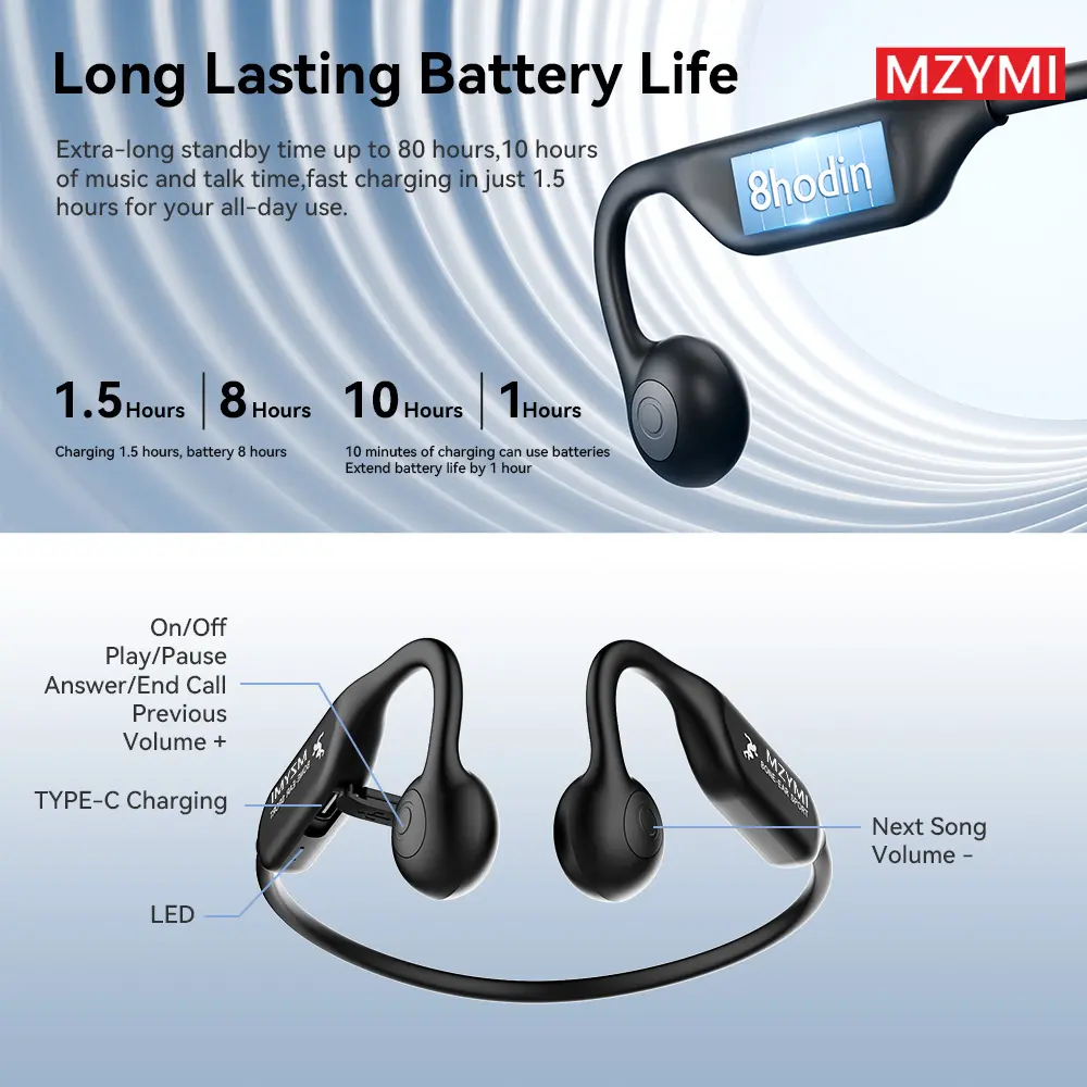 MZYMI A18 Over Ear Headphone Neckband Wireless Earphone IP56 Waterproof Headset Bone Conduction Earbuds With Mic