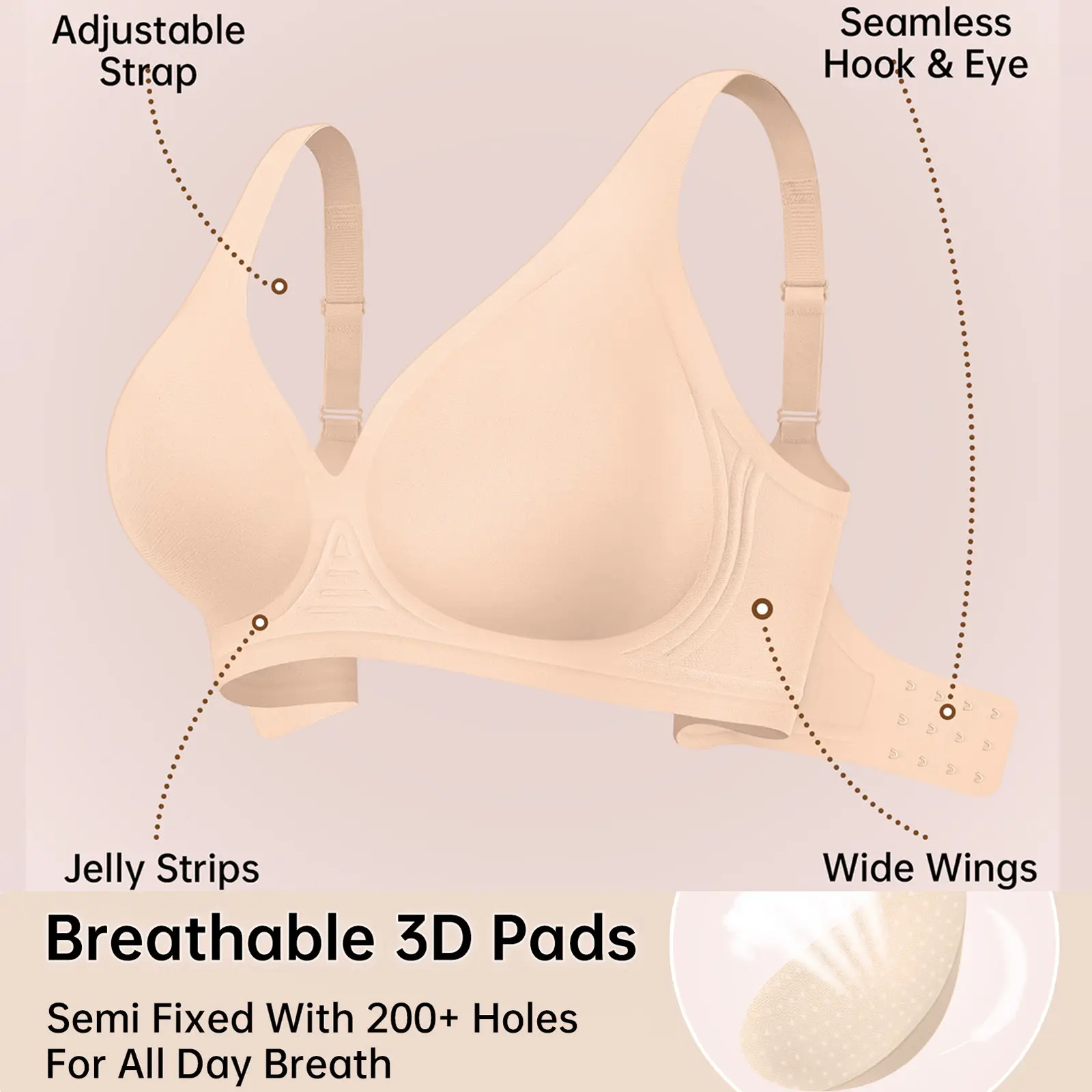 Absolutely love this beige bra! It’s super comfortable and offers great support without digging into my sides or putting pressure on my shoulders.