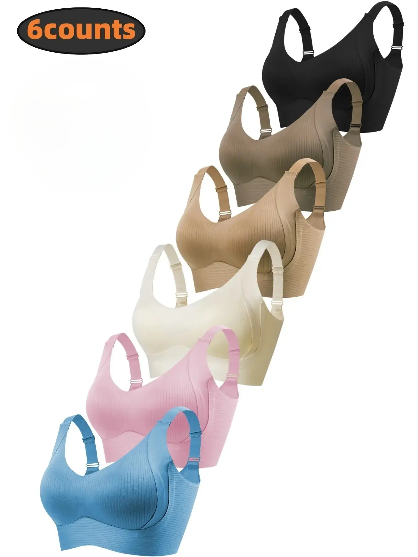 El de color rosita está mal su tirante. Está defectuoso. Apenas me di cuenta, ya que me lo iba a poner. Y no me llegaron 6 sino 5 solamente