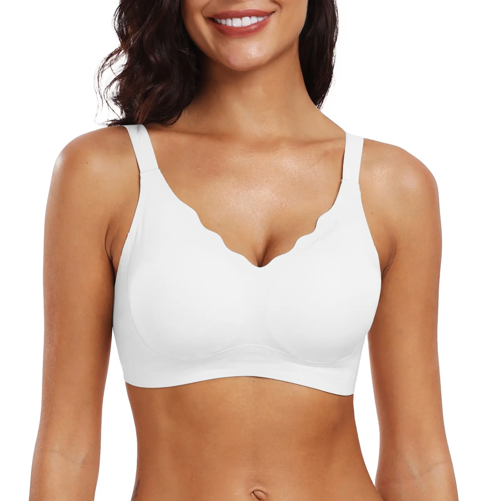 ·【Cute Scalloped Design】 OEAK wirefree bras with the upgraded V-neck and scalloped edges design that provide a smooth transition and lessen the lines seen through the outer clothing. The scalloped cut gently wraps around your bust like a flower bud, while the unique wave contours are elegant and fluid, giving you a stylish, sexy, and sweet look.