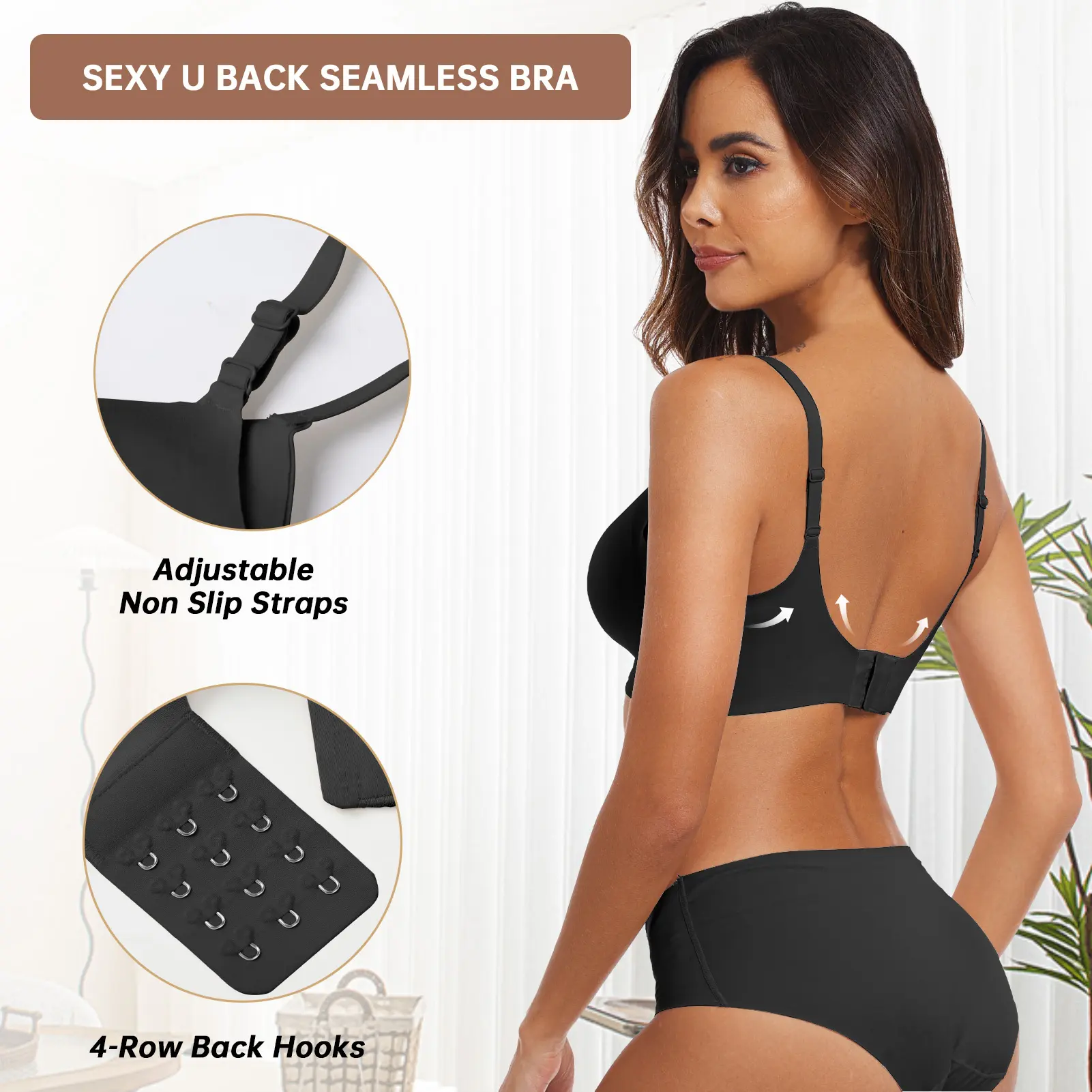 ·【Invisible U Back & Adjustable Straps】 The padded push up bras with elastic adjustable shoulder straps and 4 rows of hooks allow you to adjust the fit to your figure. The back U-shaped design and wide side bands help conceal side breasts and back fat, providing more support and a smoother appearance.