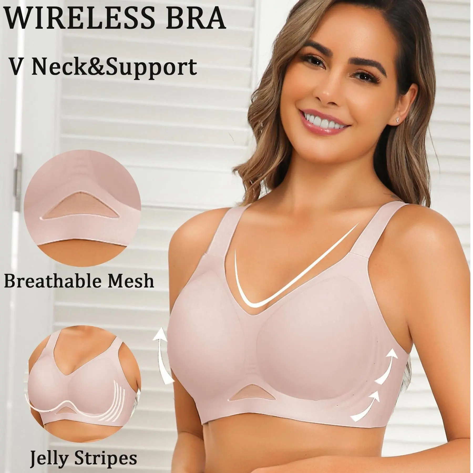 ·Jelly Stripe Support Bra: Bra for women wireless bra features jelly strip material and 3D molded cups, providing good support and a comfortable wearing experience. The jelly stripes provide 360° support for the breasts, breathable fit, invisible and seamless. Full coverage 3D molded cups provide natural bust contouring to shape and enhance bust shape.