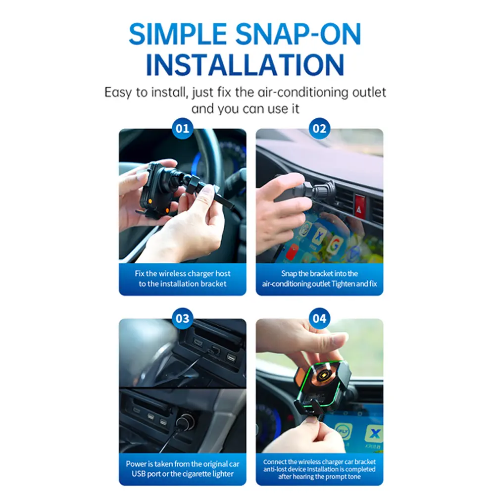 15W/10W/7.5W Fast Charging requires QC 3.0 car charger (NOT INCLUDED), 5W standard wireless charging for other wireless charging Phones (5V/2A adapter is required).