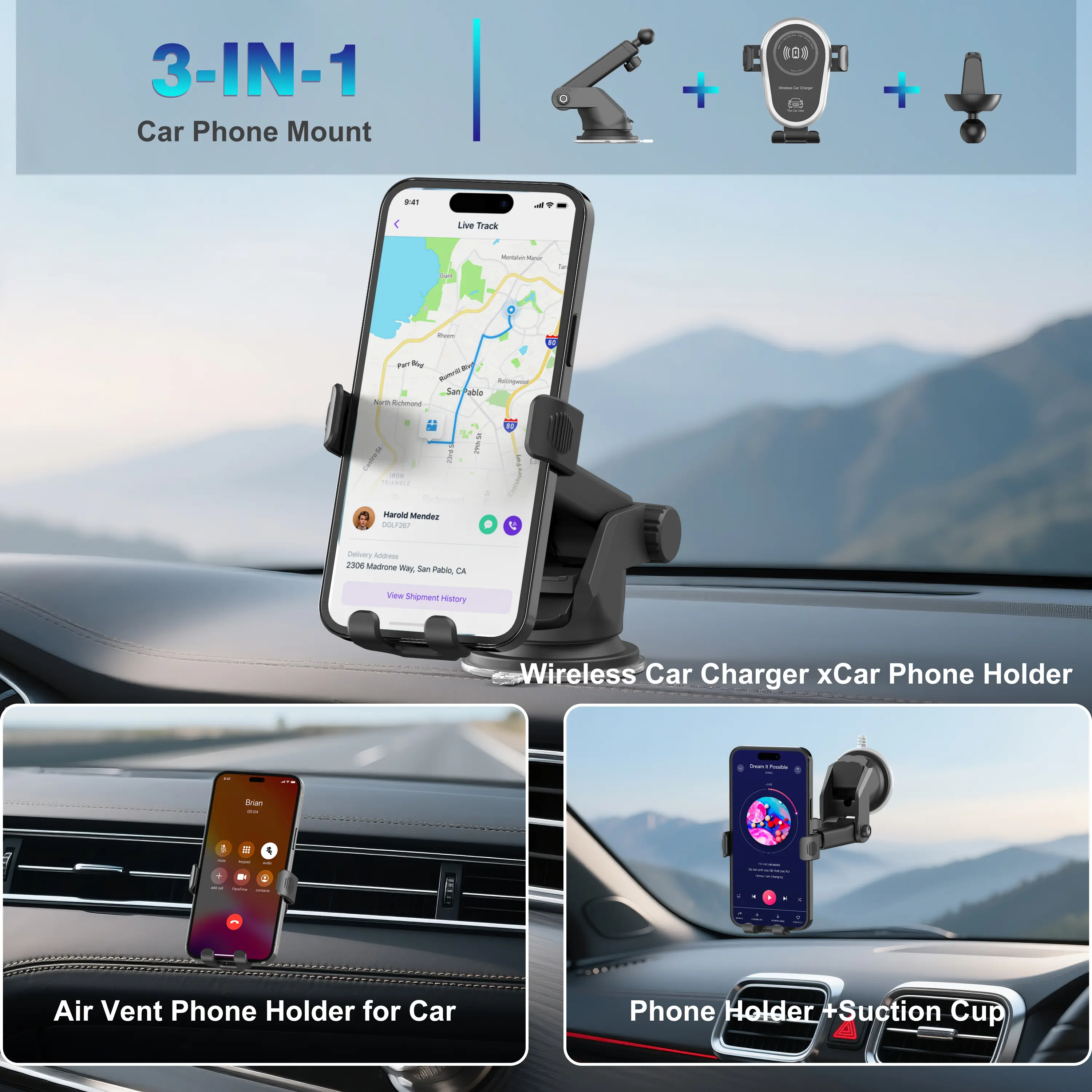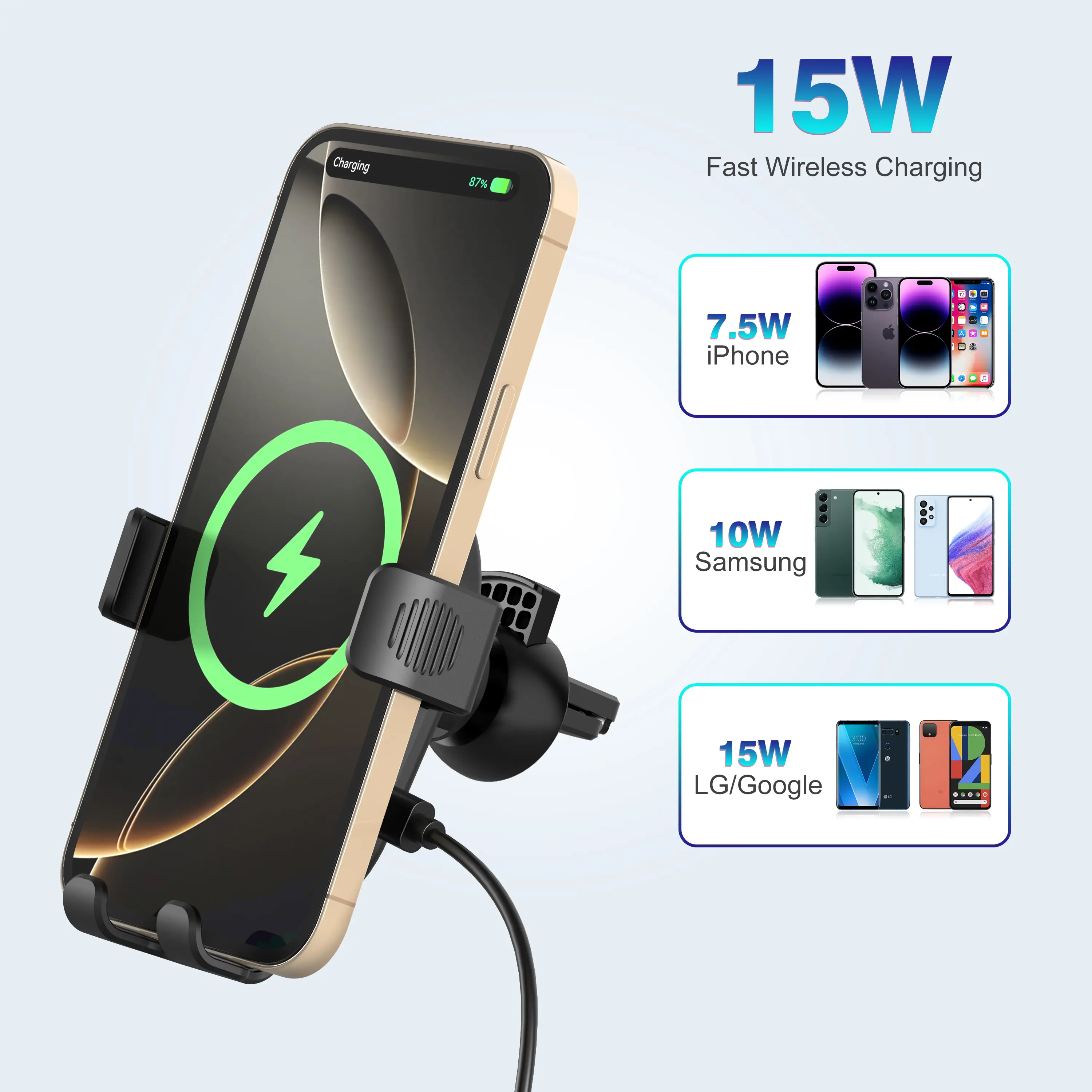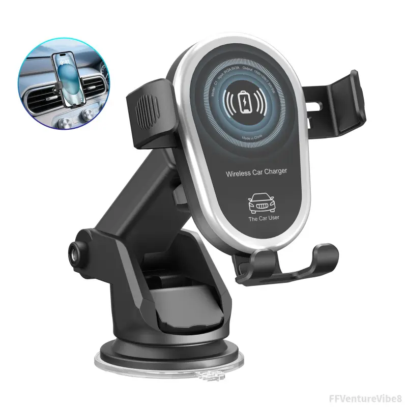 5. Wireless Car Charger: 15W Fast Charging Phone Holder for iPhone 15 14 13 12 11 Pro Max, Samsung Galaxy S23 S22 S21 FFVentureVibe8