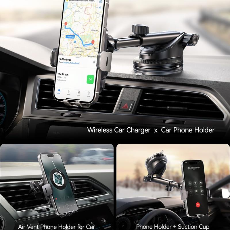 This isn’t just a charger—it’s a 3-in-1 wonder! The car phone holder comes with suction cups and ventilation clips. Stick it on the windshield, dashboard, or air vents—wherever works for you. It fits most cars, pickup trucks, SUVs, taxis, and trucks. Uber and Lyft drivers, this is your new best friend!