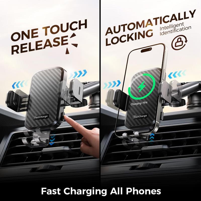 Our charger uses intelligent identification and auto-clamping tech. Just place your phone, and it gets recognized and clamped securely—no hands needed! It fits different phone sizes and models perfectly, so your phone stays put.