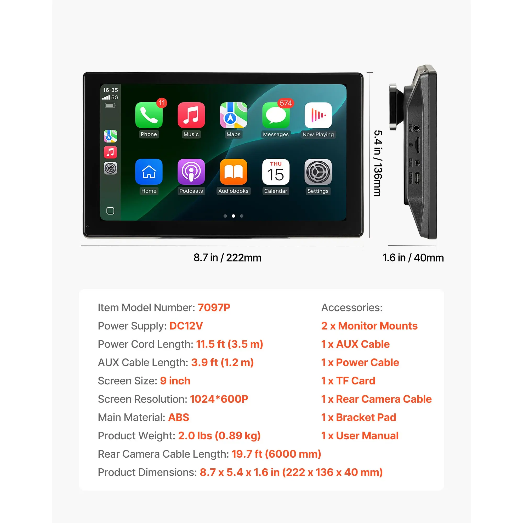 • Wide Vehicle Compatibility: Our car accessories kit comes with an adjustable suction mount for stable installation and easy disassembly. Powered by DC 12V, this CarPlay screen works with most vehicle types—RVs, campers, trucks, pickups, and vans