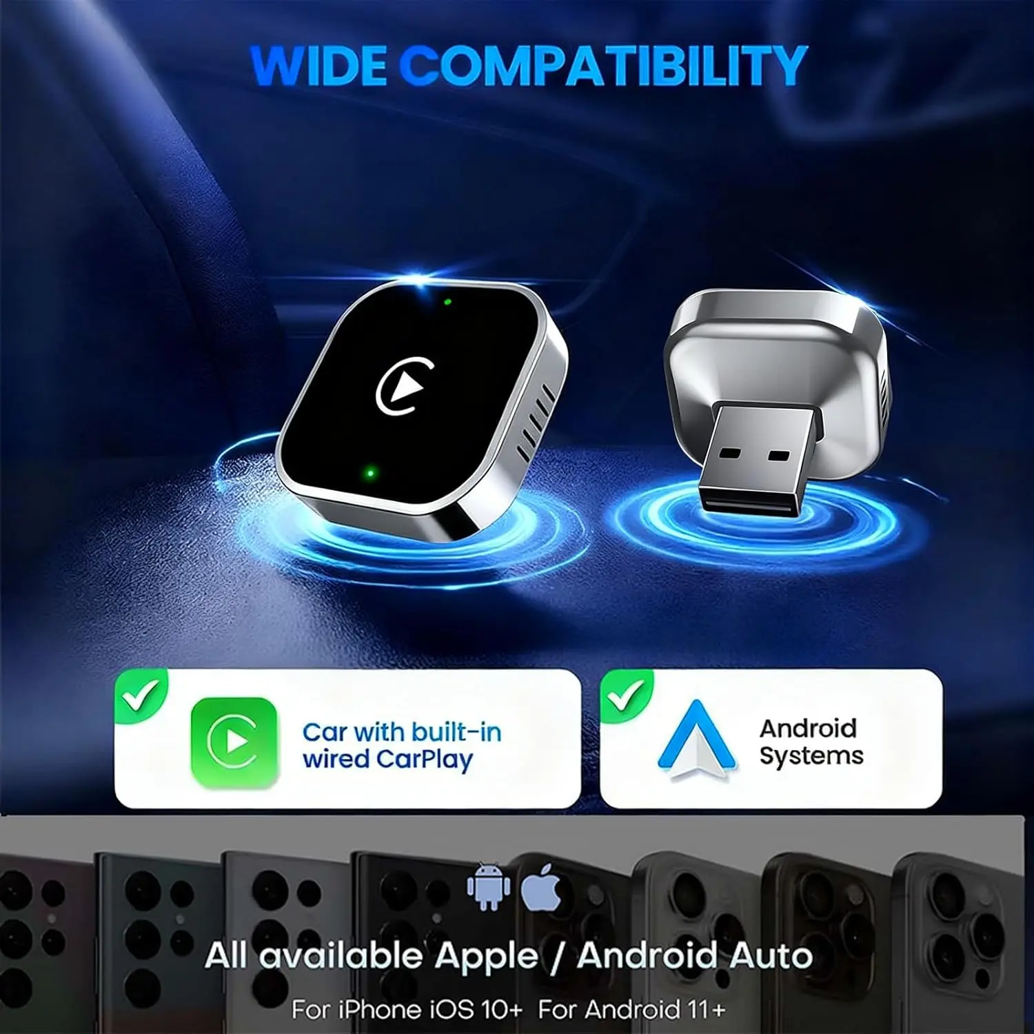 2026 Wireless Carplay Adapter for Android & Other Models, Quick Connection, No Delay, Hands-Free Calling, Suitable for 2016+ Wired Vehicles, Wireless Carplay Dongle