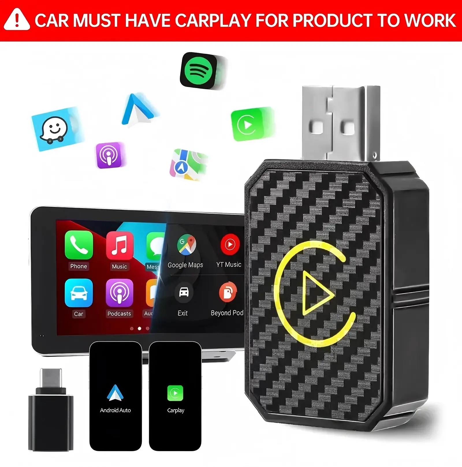 1.The main function of this product is to convert wired CarPlay orAndroid Auto into wireless.