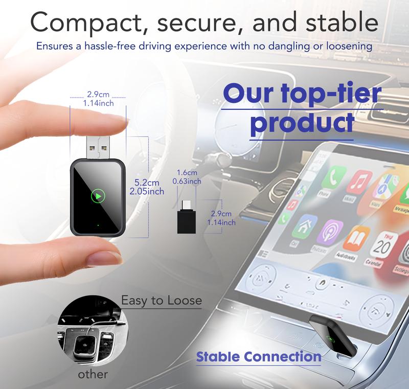 ·Core Function: Converts factory-wired CarPlay/Android Auto to wireless connectivity