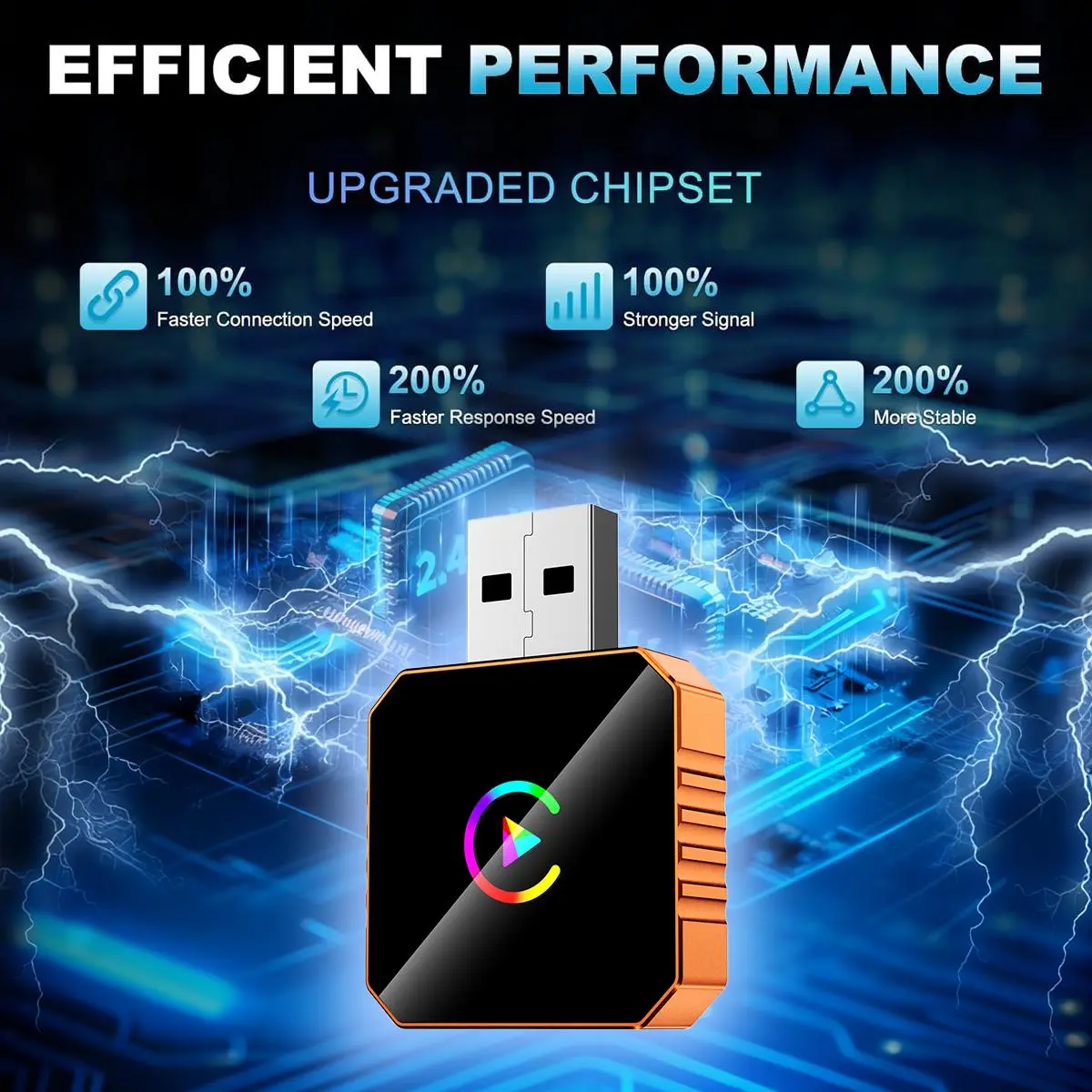 2026 CarPlay wireless CarPlay adapter for iPhone/Android, Orange,fast connection, no delay, hands-free calls, wireless adapter, electronic charger, CarPlay adapter