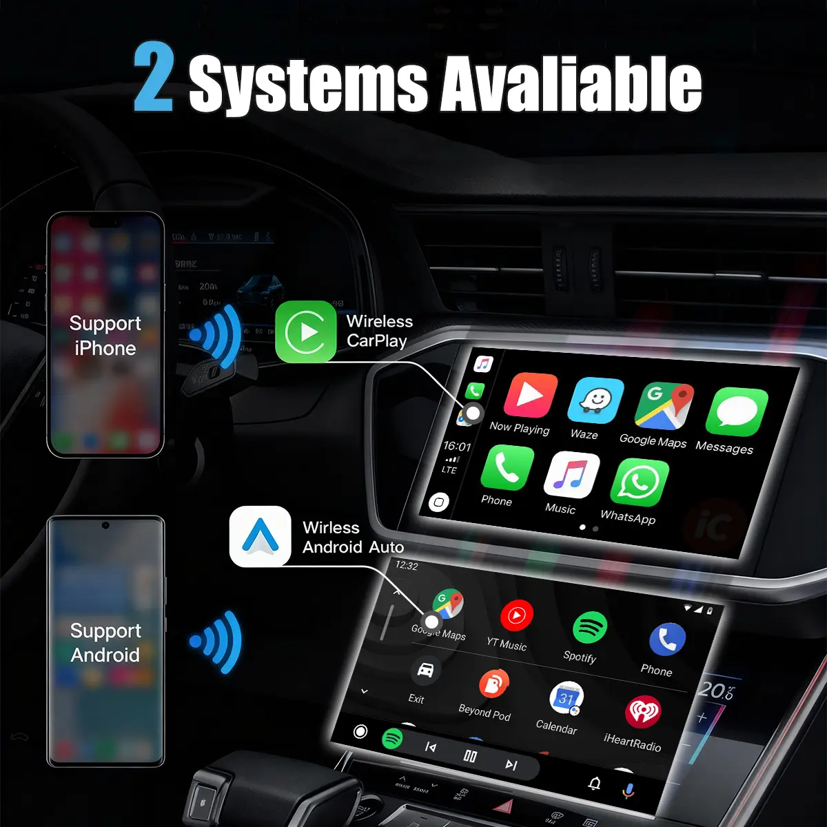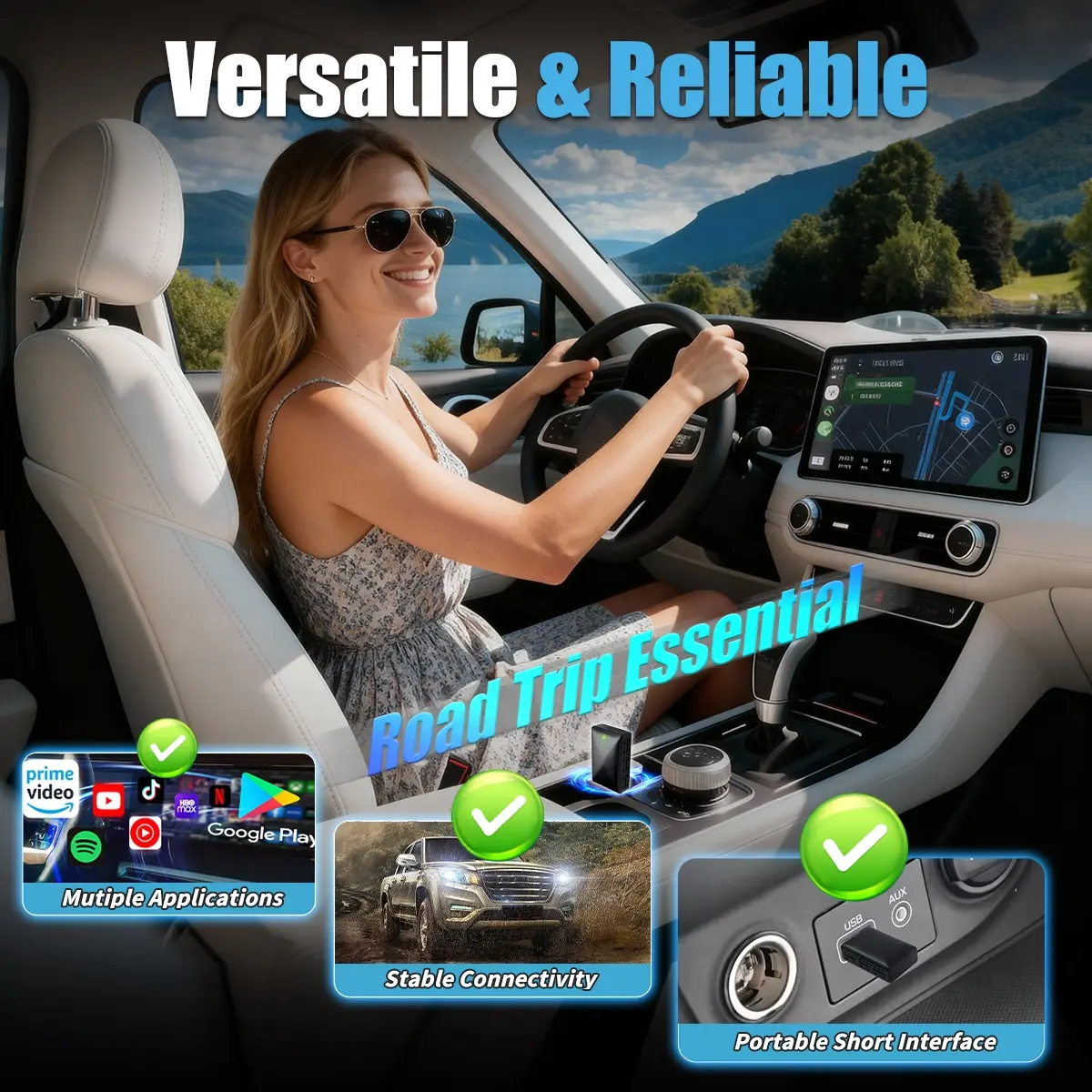 True plug-and-play with auto-reconnect. Pair once via Bluetooth 5.0 & 2.4/5G WiFi, it connects automatically in seconds every time you start your car.