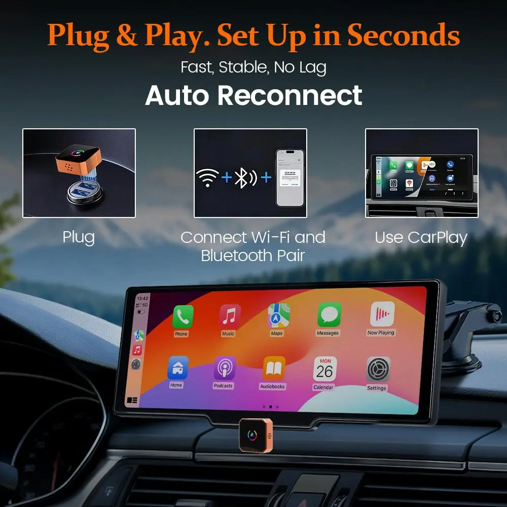 2026 Wireless CarPlay & Android Auto Adapter – Plug & Play, Fast No-Delay, Hands-Free Calling, iPhone & Android Compatible