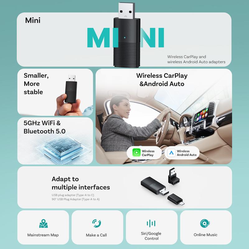 Best purchase for wireless Apple CarPlay. Works super great and easy to install with just a push of the USB, Bluetooth pairs on its own and detects device super Fast. Highly recommended this Product!